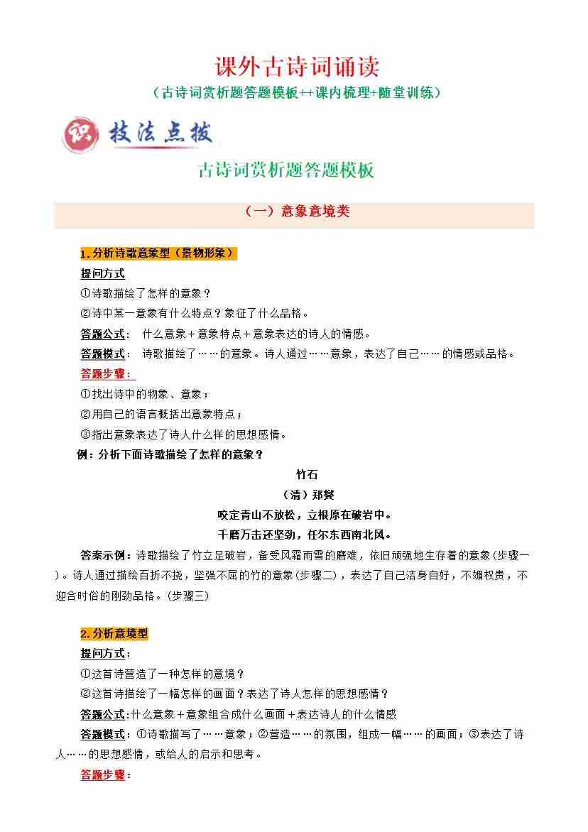课外古诗词诵读(古诗词赏析题答题模板 课内梳理 随堂训练)解析版