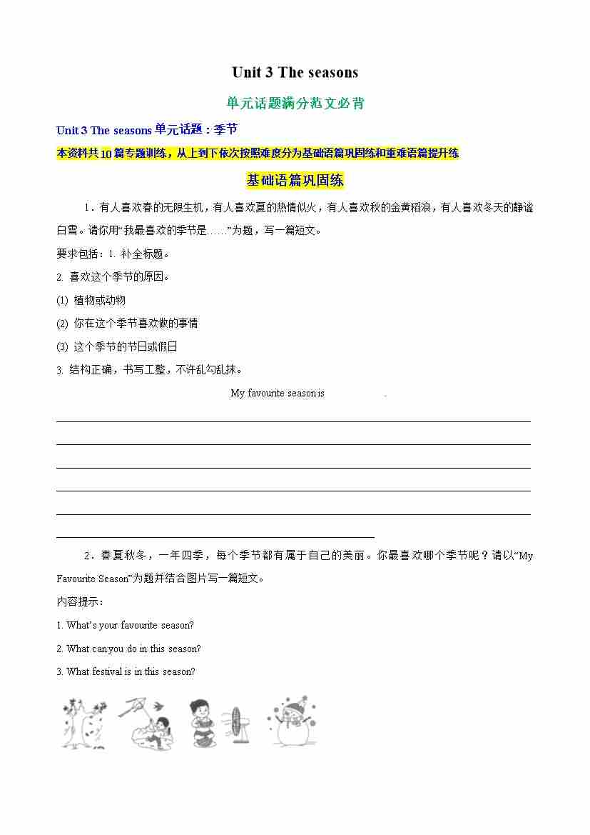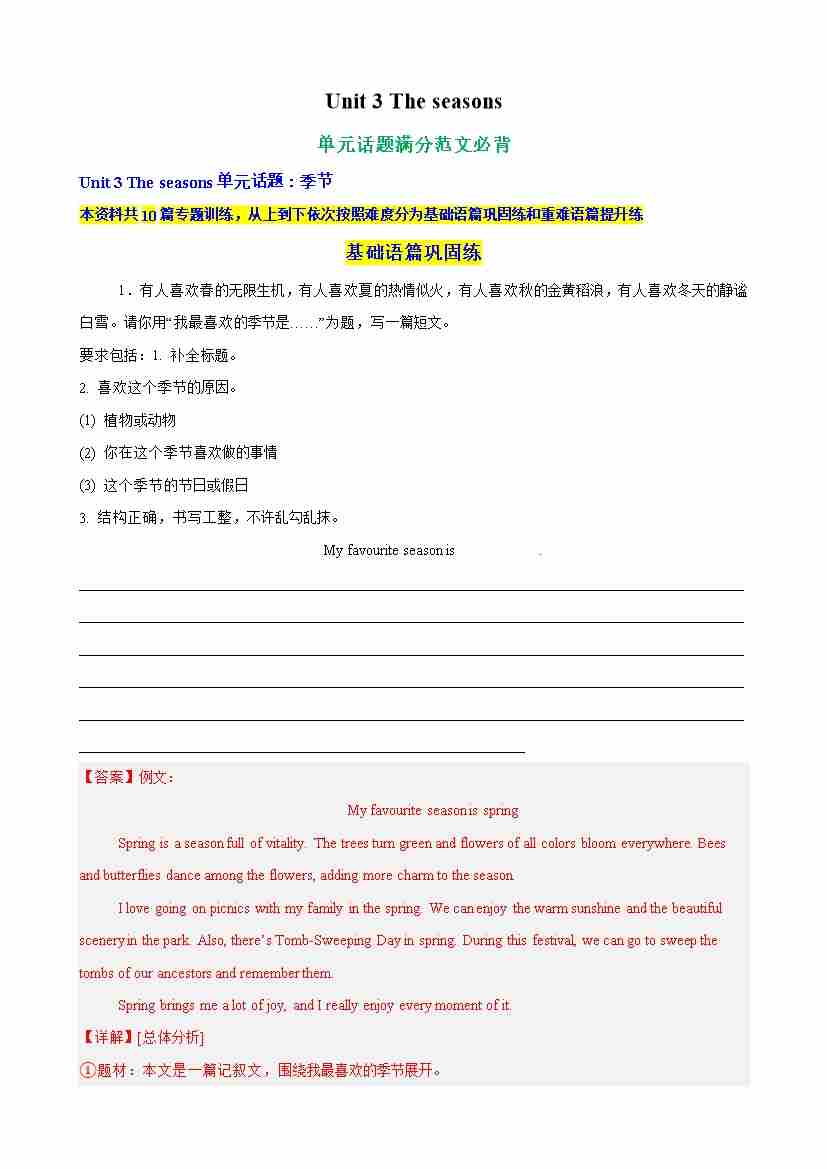Unit 3 The seasons单元话题满分范文必背(教师版)
