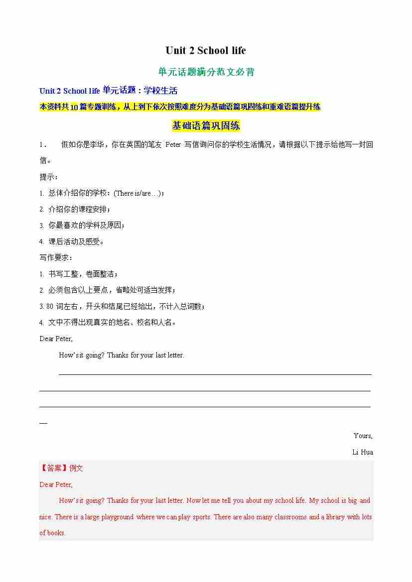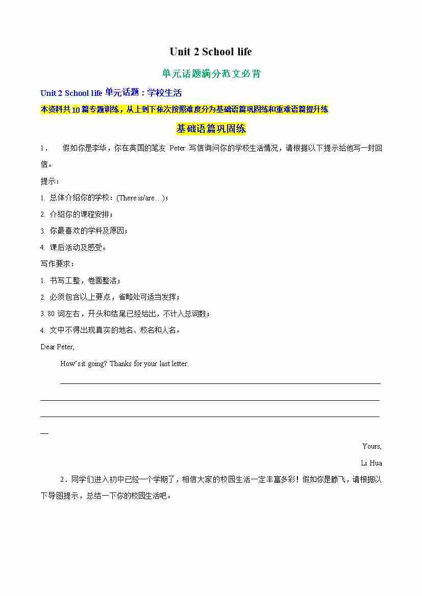Unit 2 School life 单元话题满分范文必背(教师版)