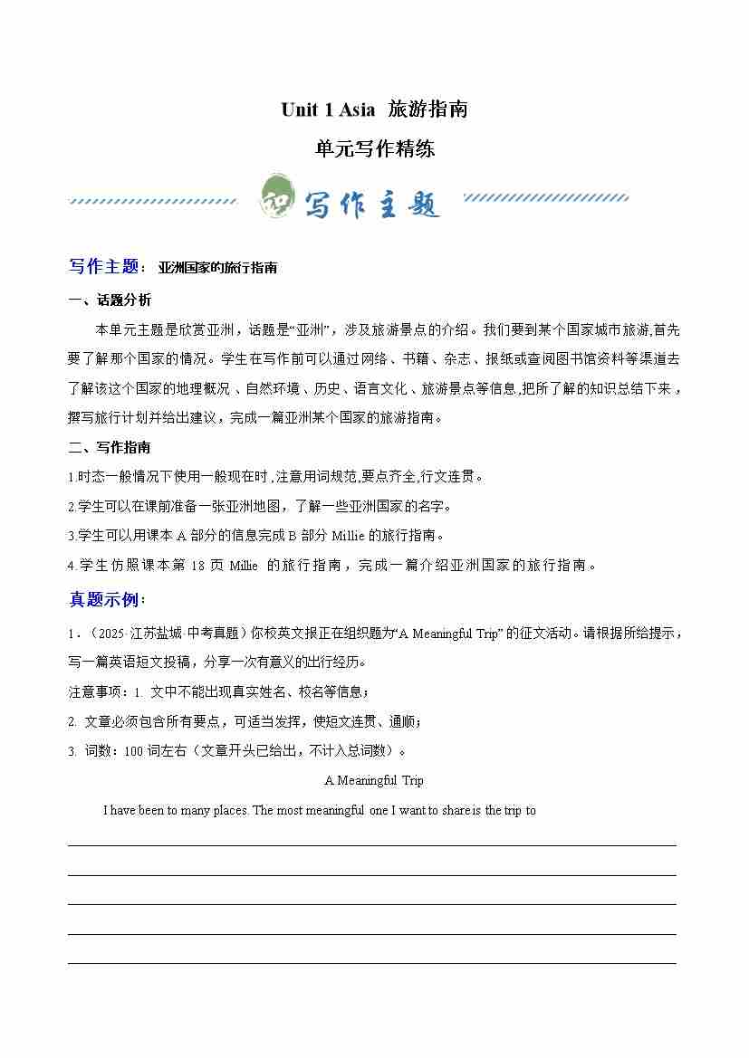Unit 1 Asia 旅游指南(单元写作精练)(原卷版)
