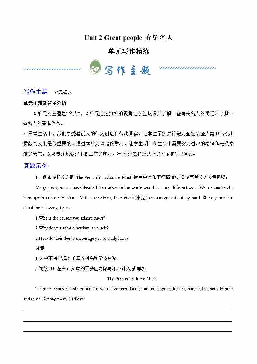 Unit 2 Great people 介绍名人(单元写作精练)(原卷版)