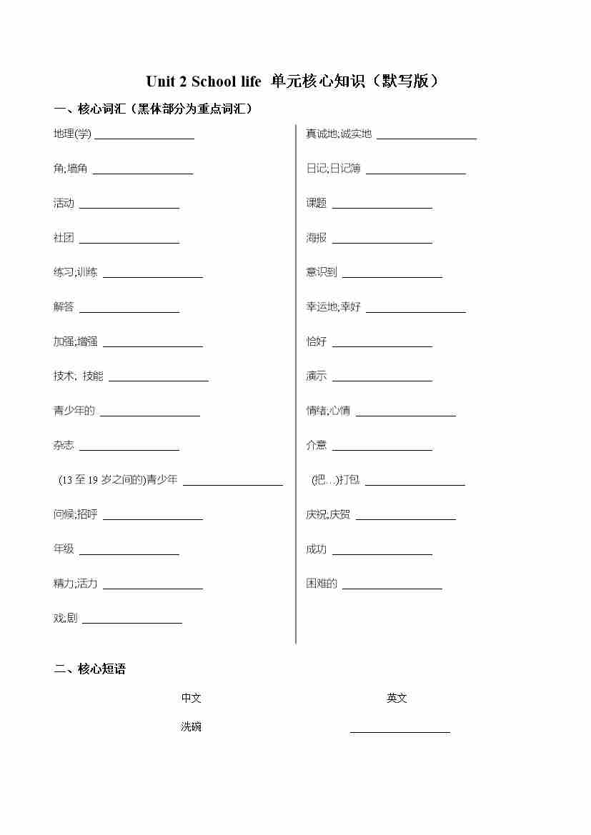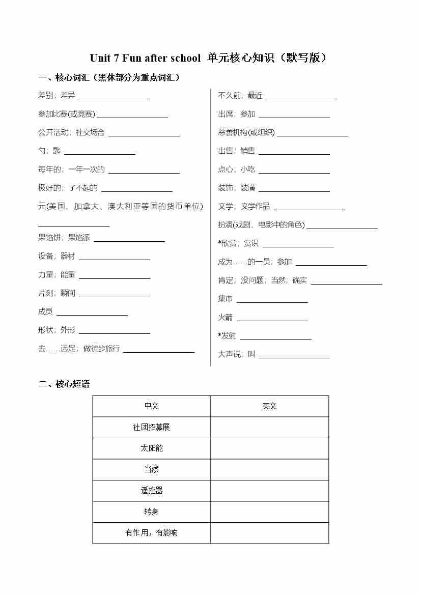 Unit 7 Fun after school(单元核心知识)(默写版)