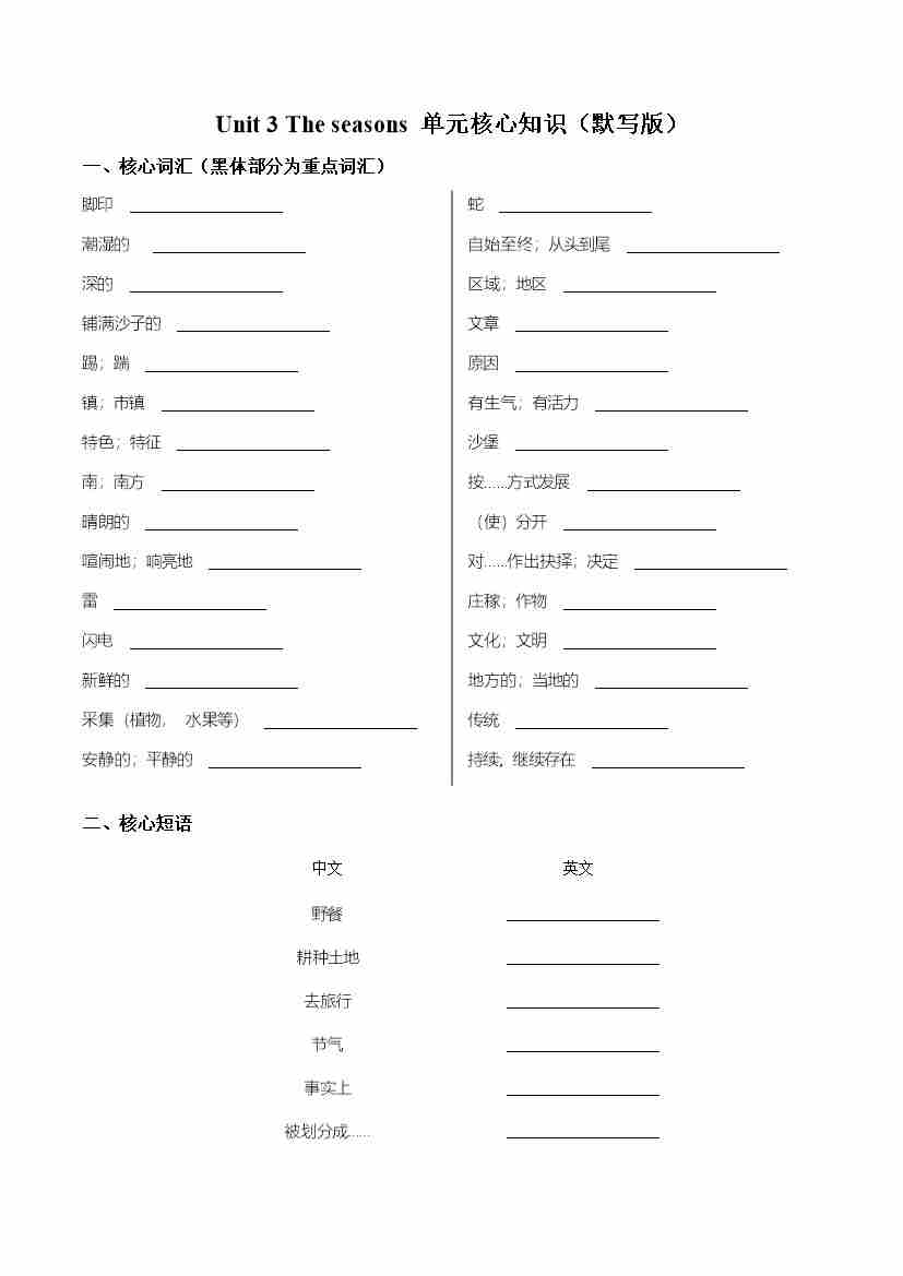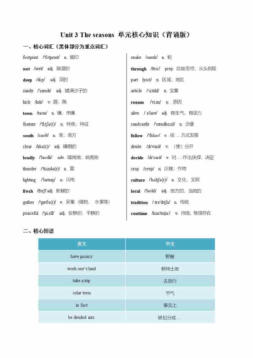 Unit 3 The seasons(单元核心知识)(背诵版)