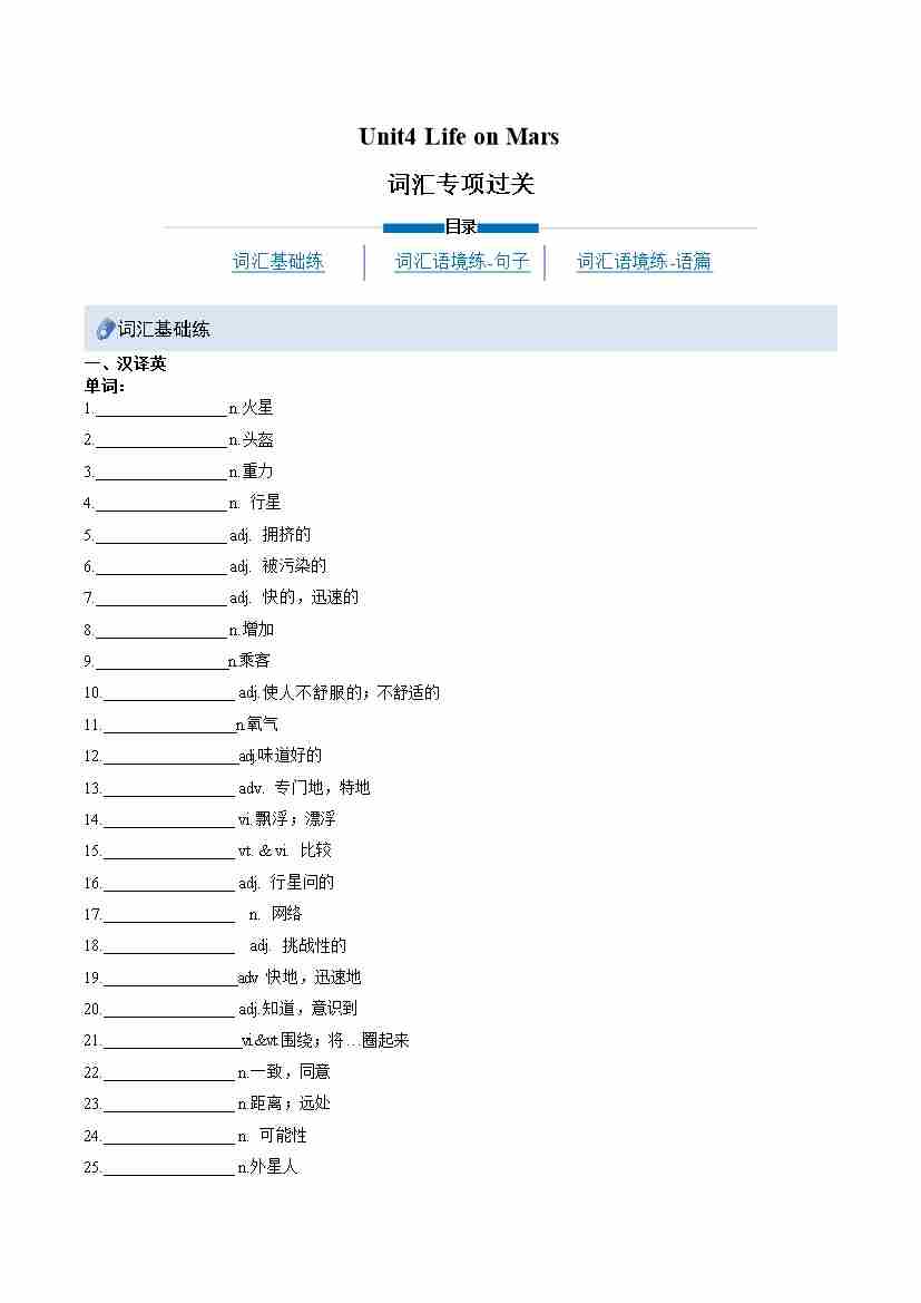 Unit 4 Life on Mars(重难词汇精练)(原卷版)
