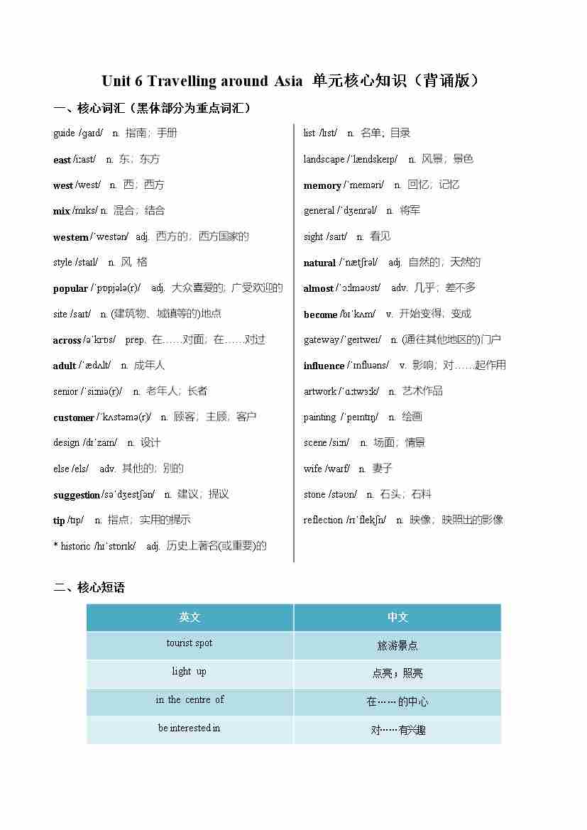 Unit 6 Travelling around Asia(单元核心知识)(背诵版)5