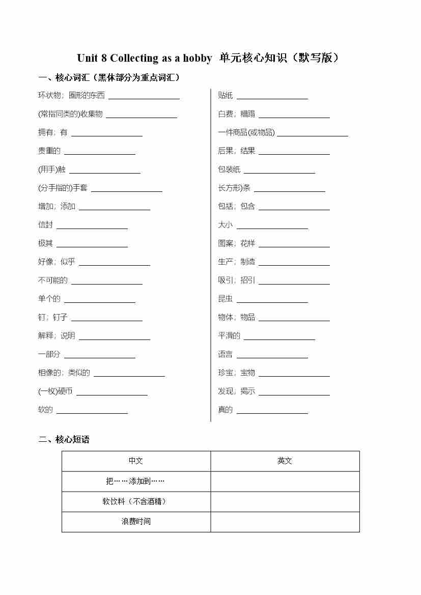 Unit 8 Collecting as a hobby(单元核心知识)(默写版)