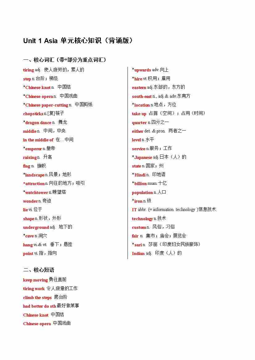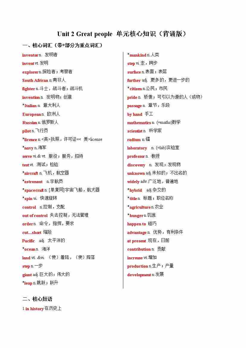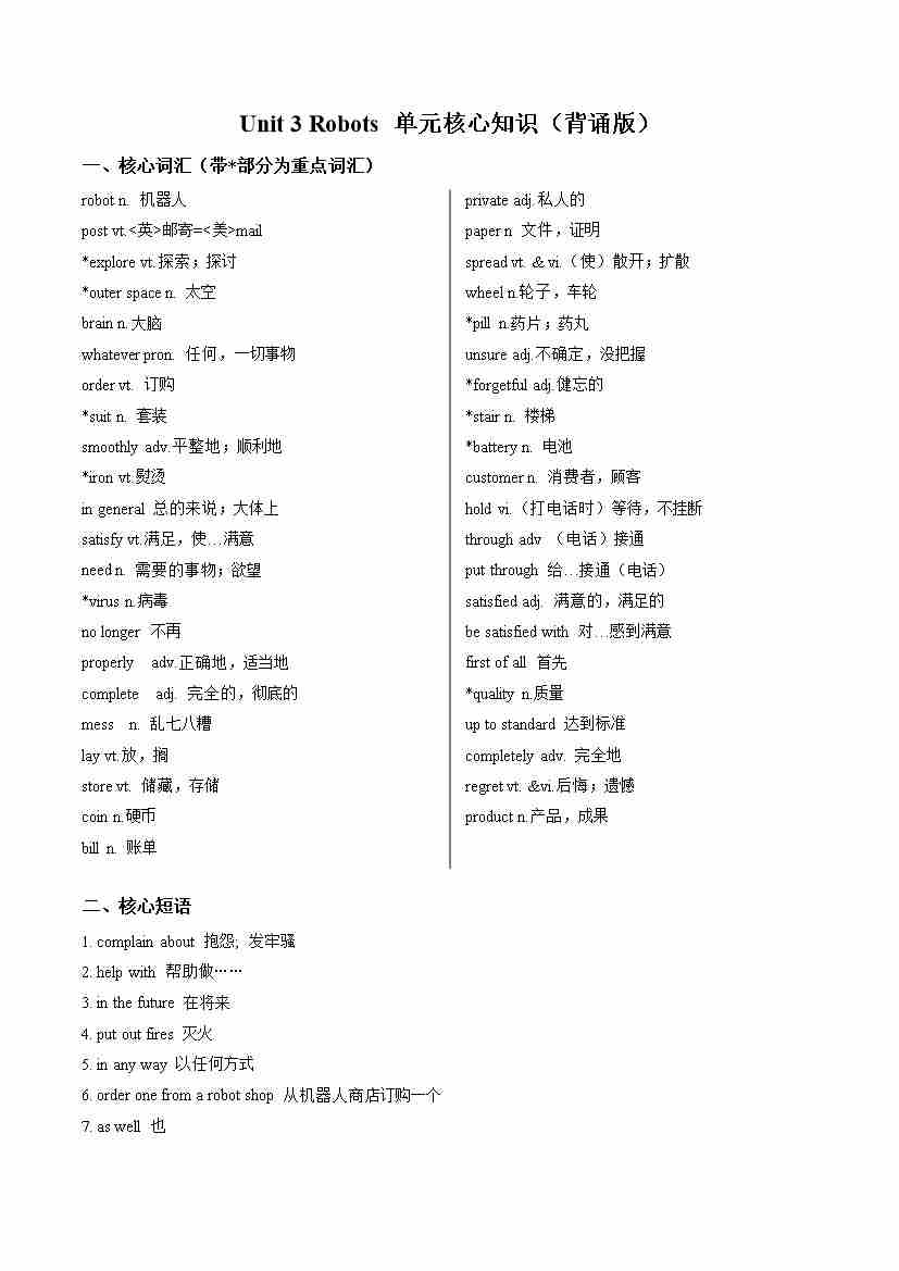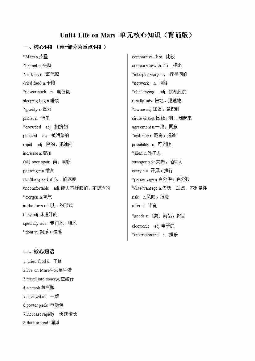 Unit 4 Life on Mars(单元核心知识)(背诵版)
