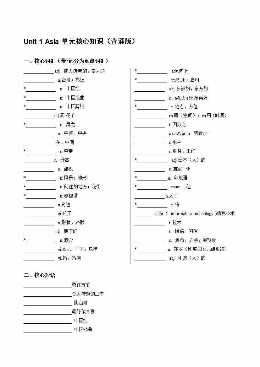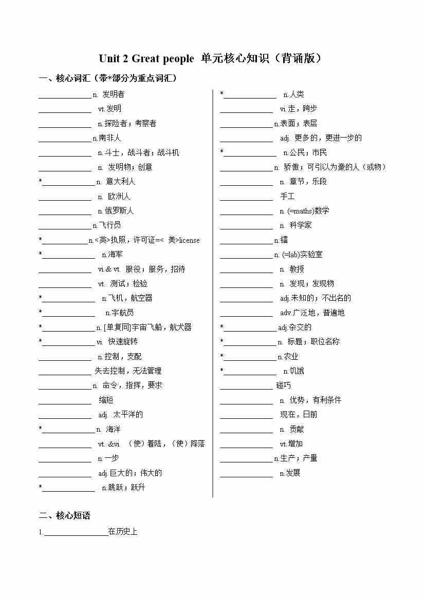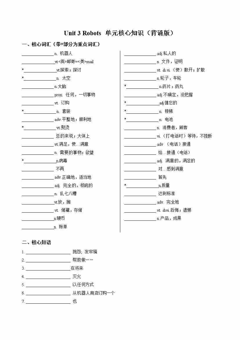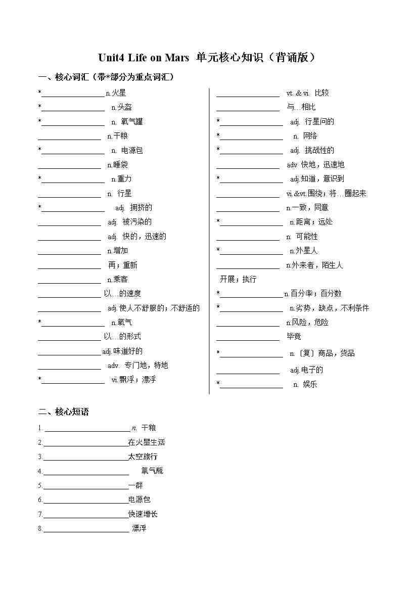 Unit 4 Life on Mars(单元核心知识)(默写版)