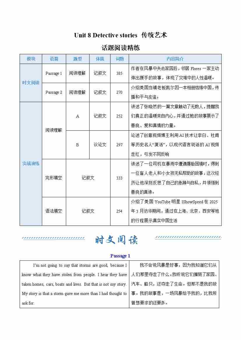 Unit 8 Detective stories 侦探故事(话题阅读精练)(原卷版)