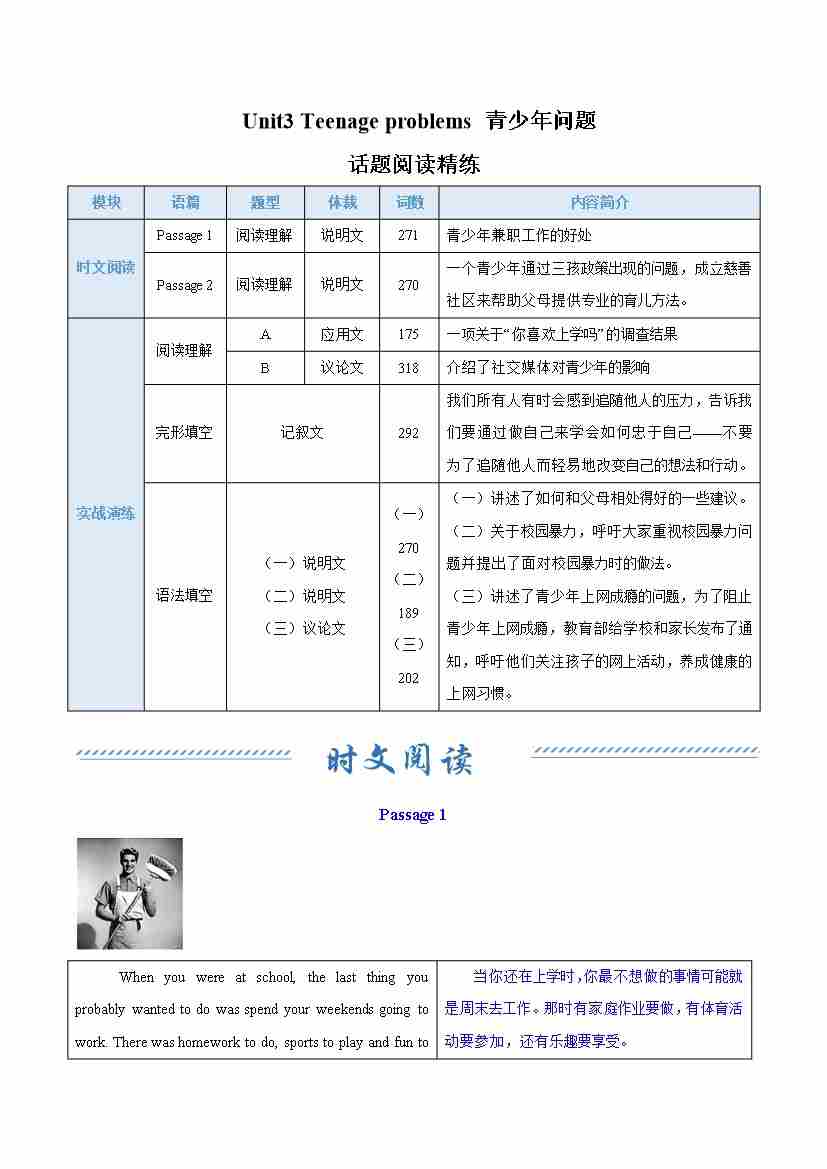 Unit 3 Teenage problems 青少年问题(话题阅读精练)(原卷版)