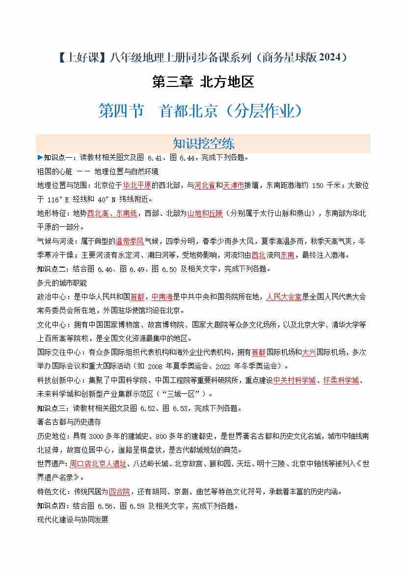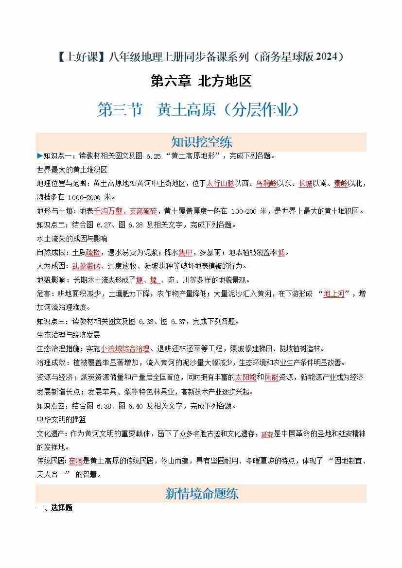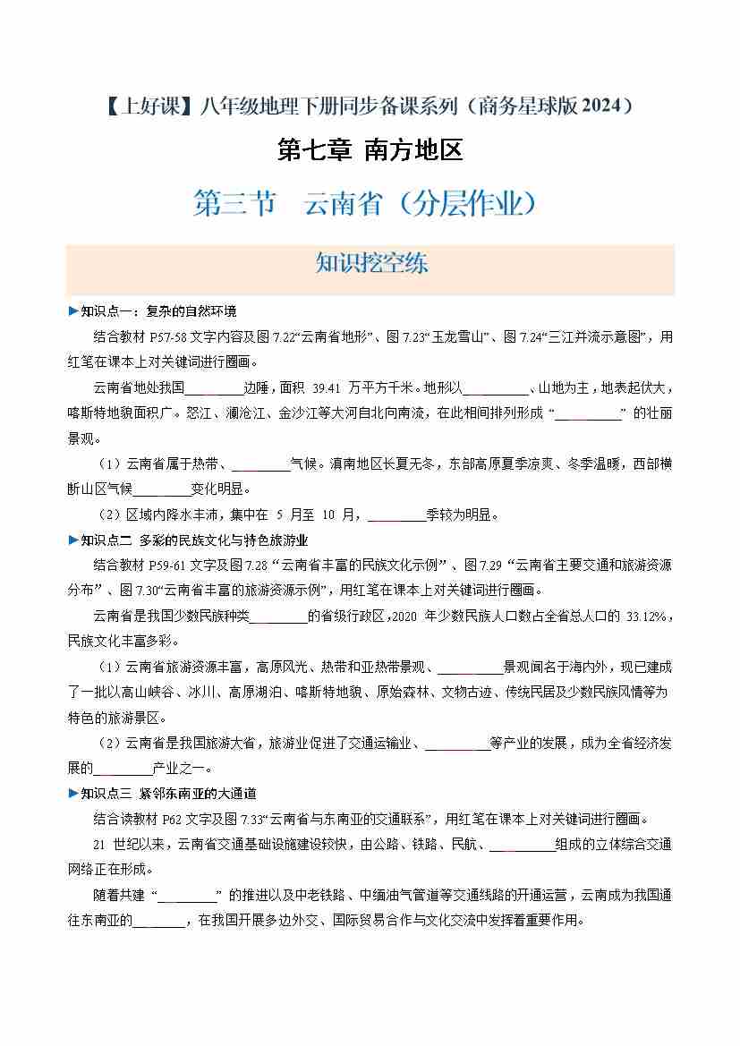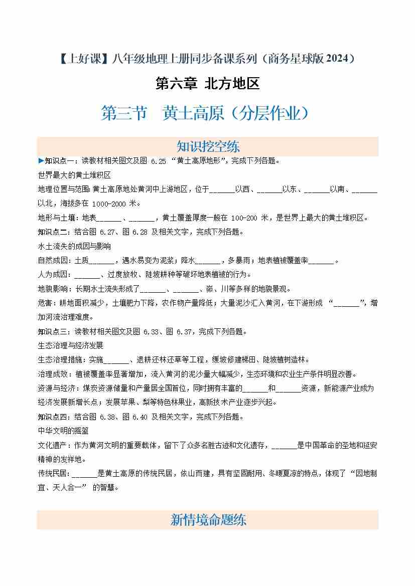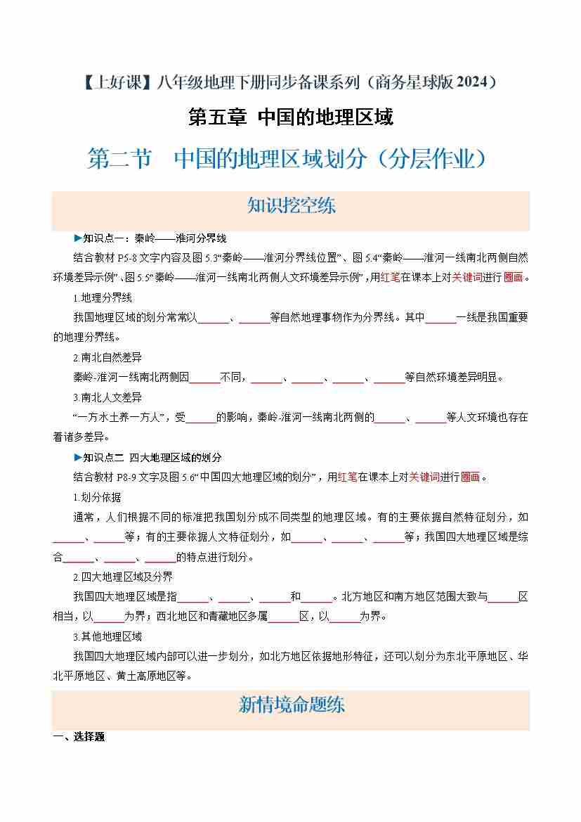 第二节 中国的地理区域划分(分层作业)(原卷版)
