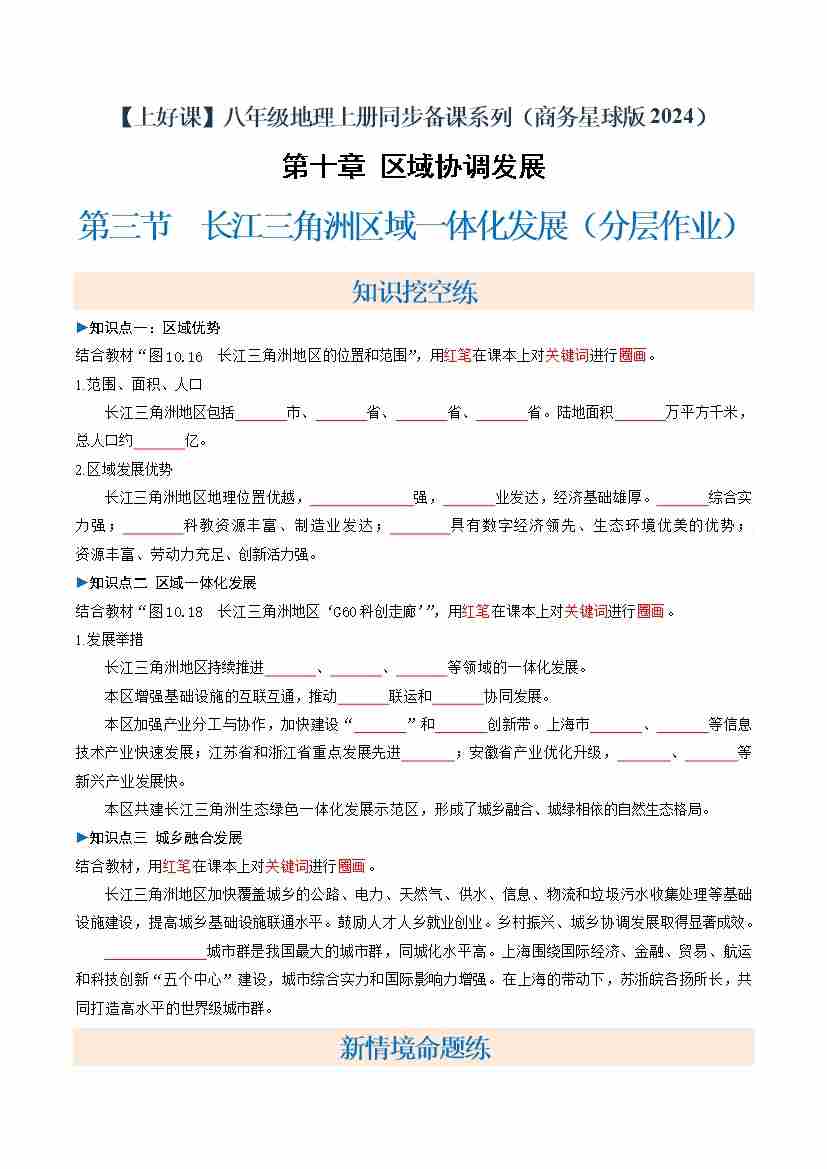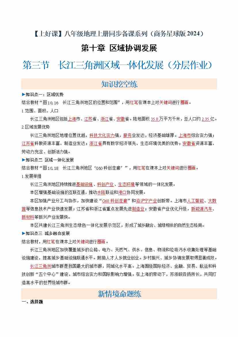 第三节 长江三角洲区域一体化发展(分层作业)(解析版)