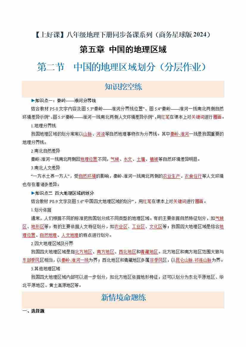第二节 中国的地理区域划分(分层作业)(解析版)