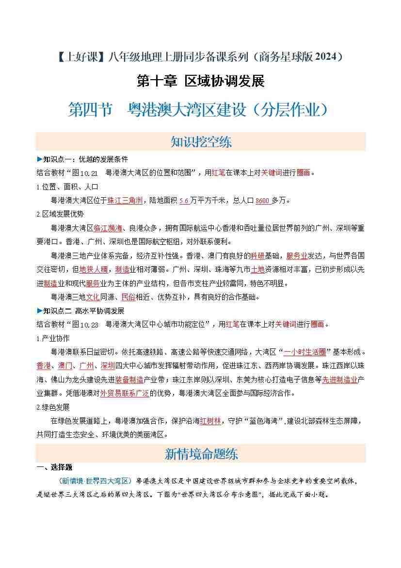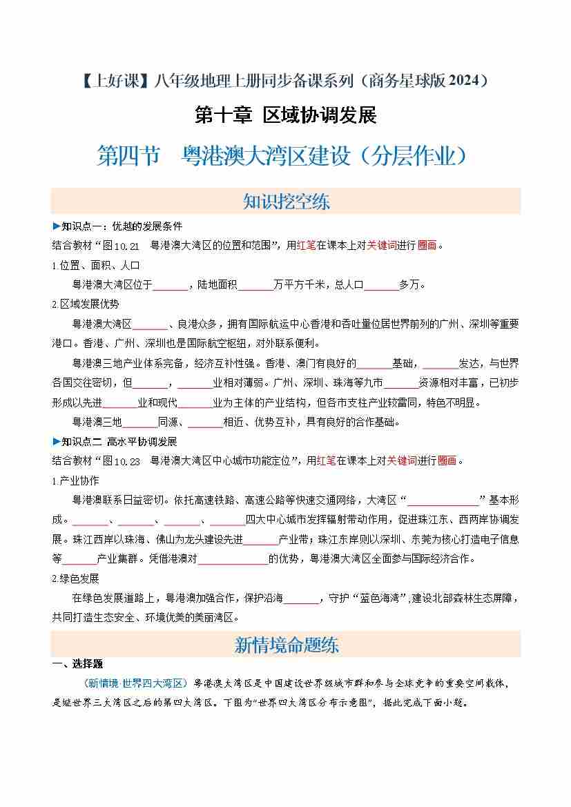 第四节 粤港澳大湾区建设(分层作业)(原卷版)