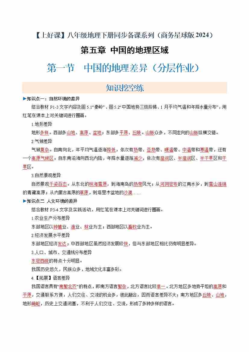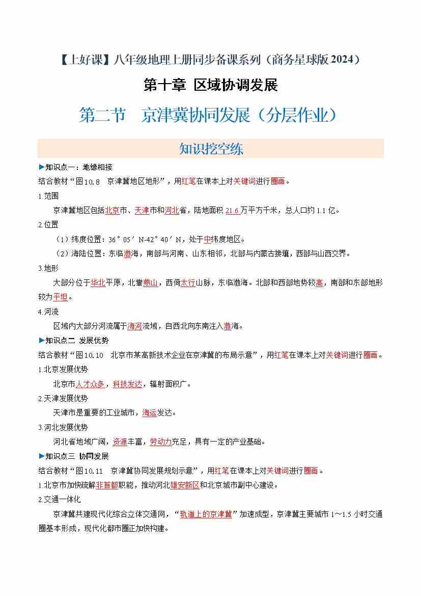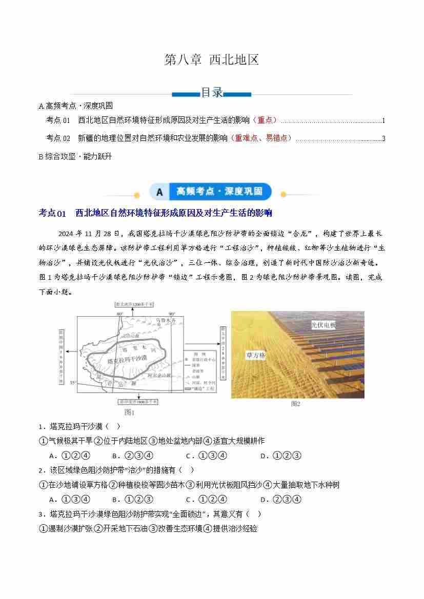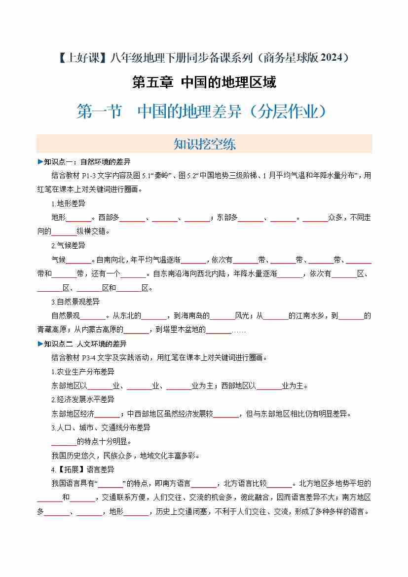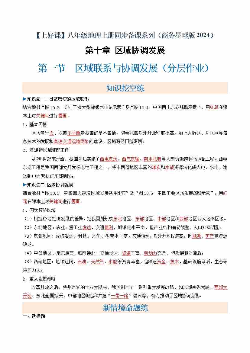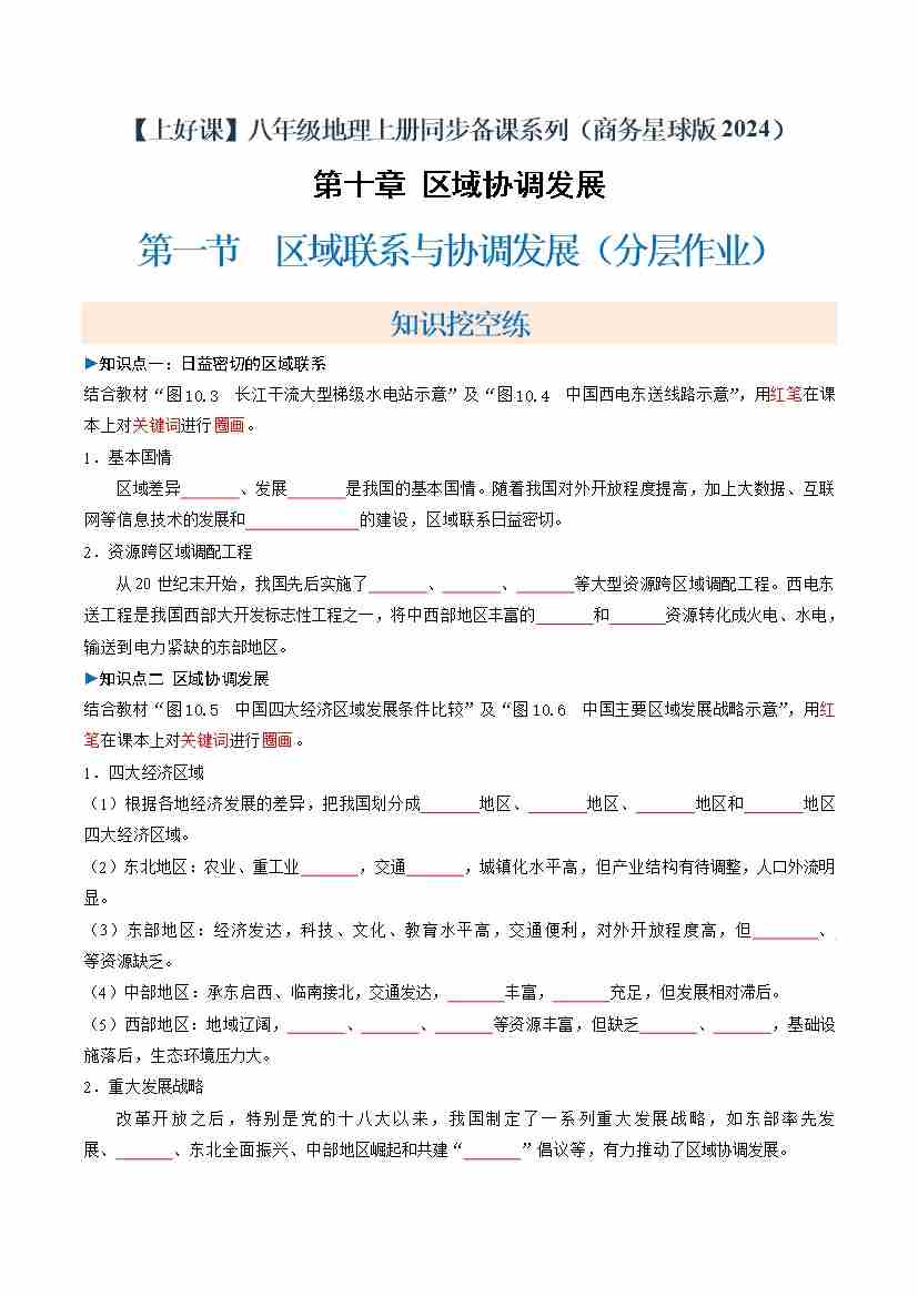第一节 区域联系与协调发展(分层作业)(原卷版)