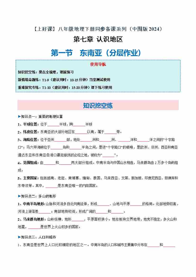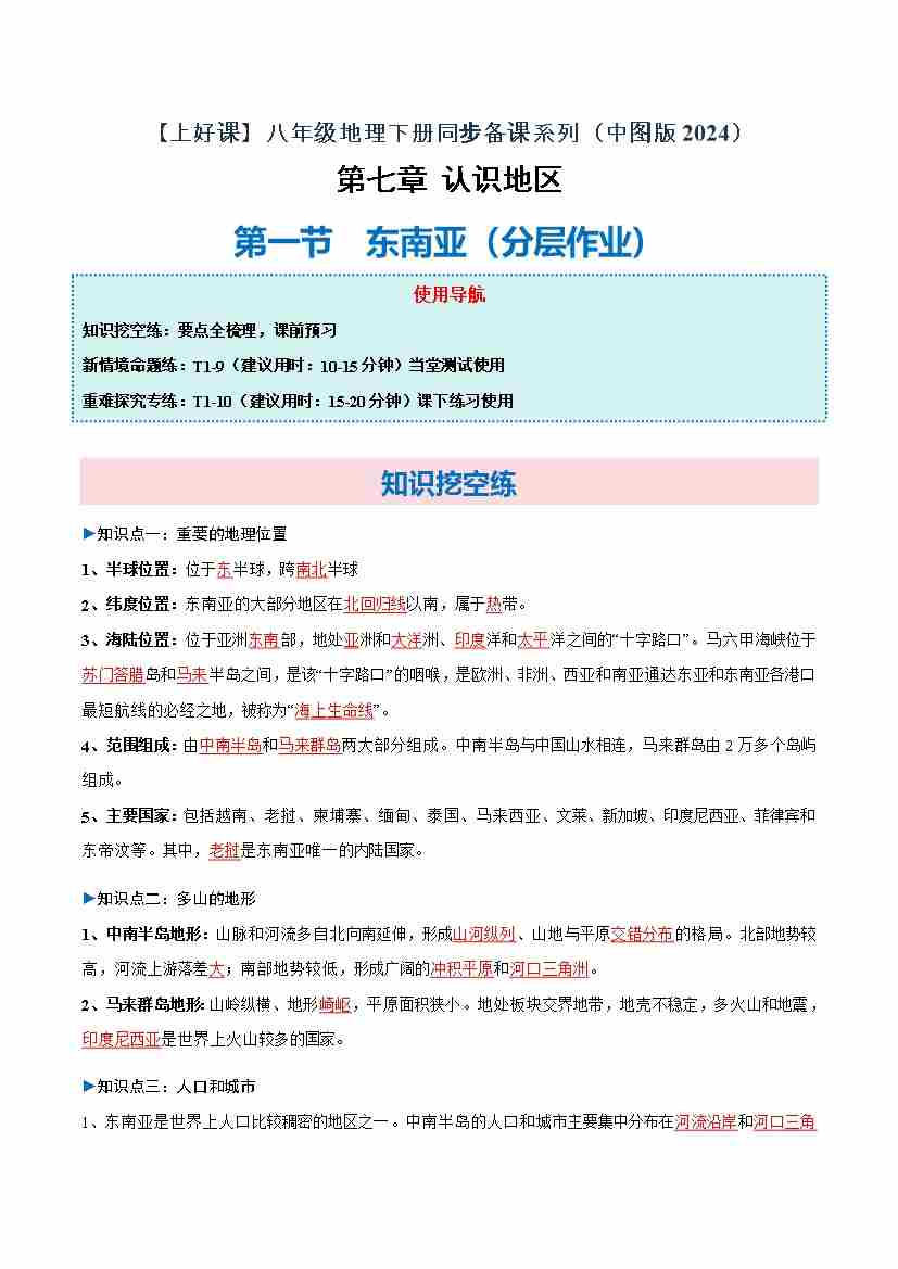 7.1 东南亚(分层作业)(原卷版)
