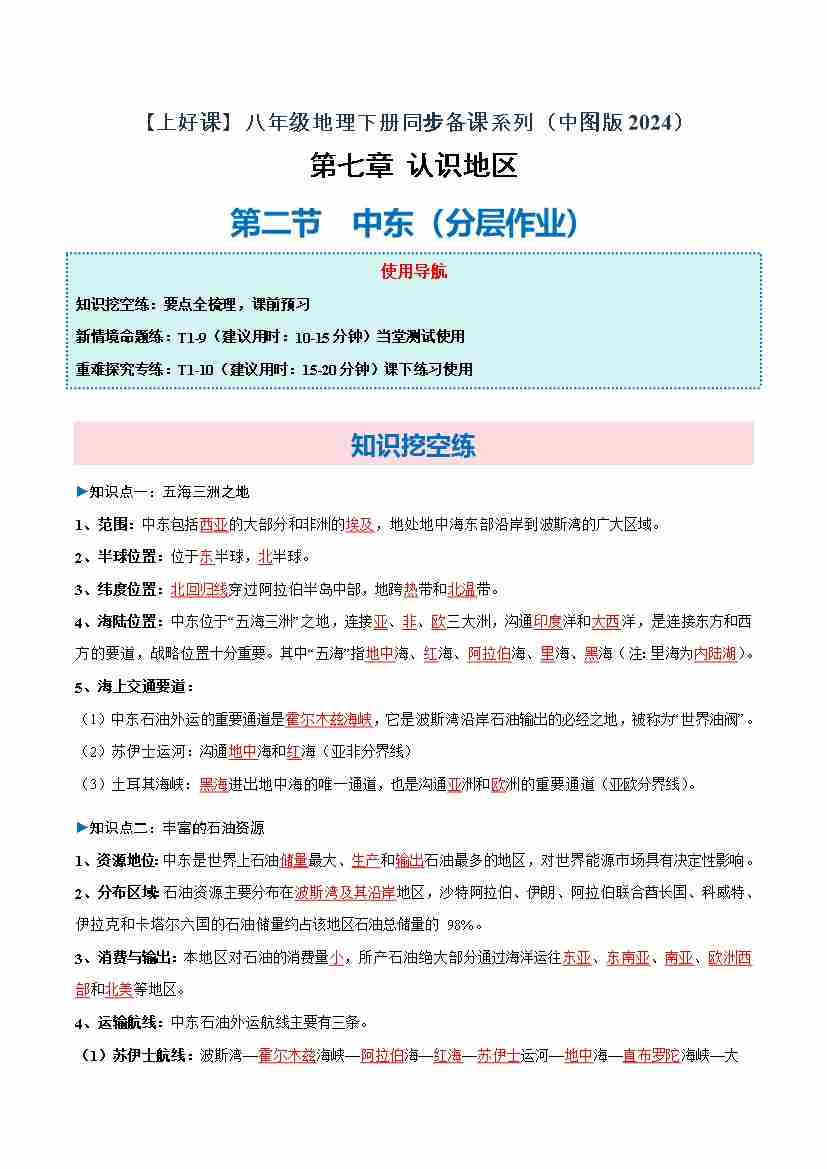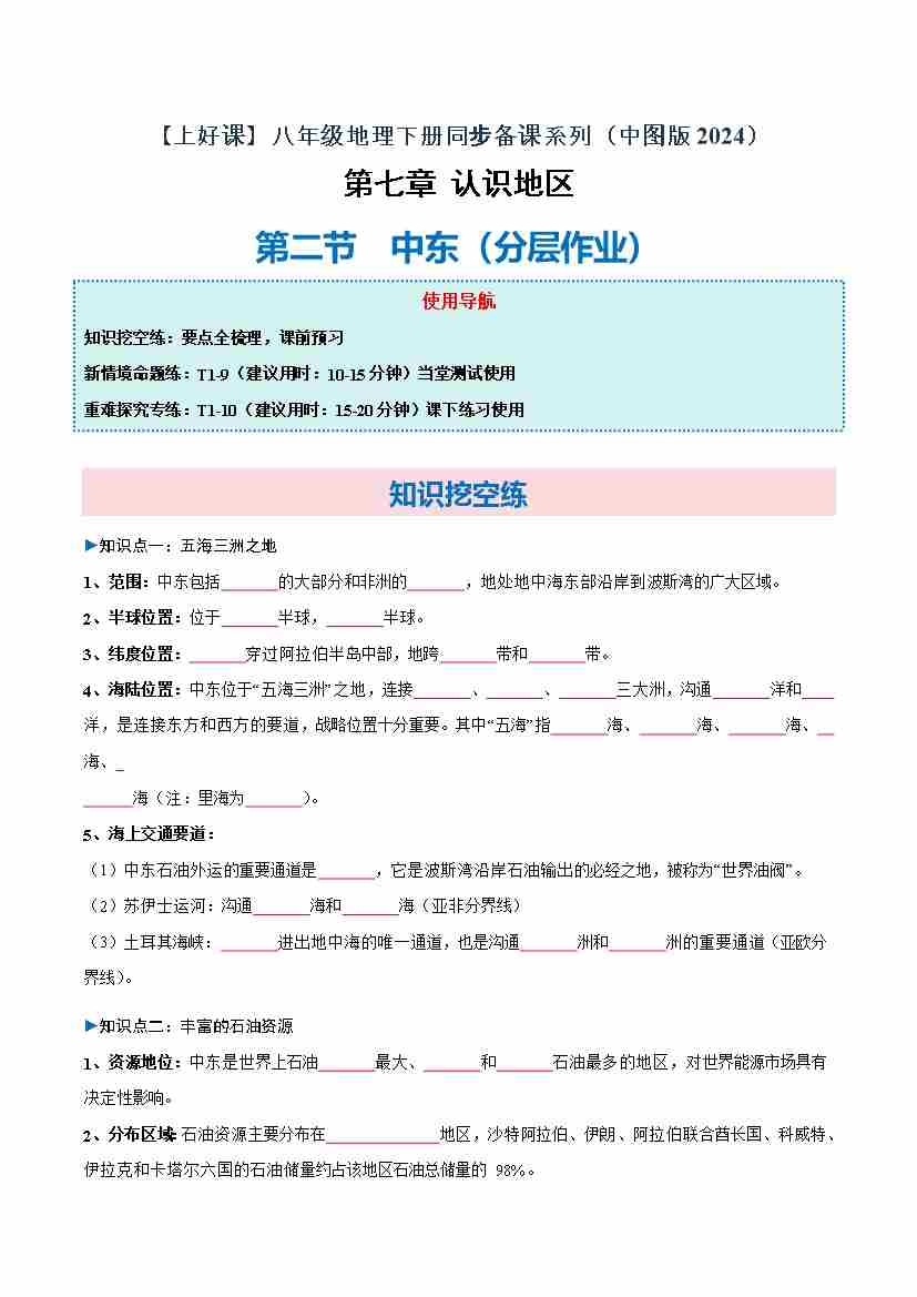 7.2 中东(分层作业)(原卷版)