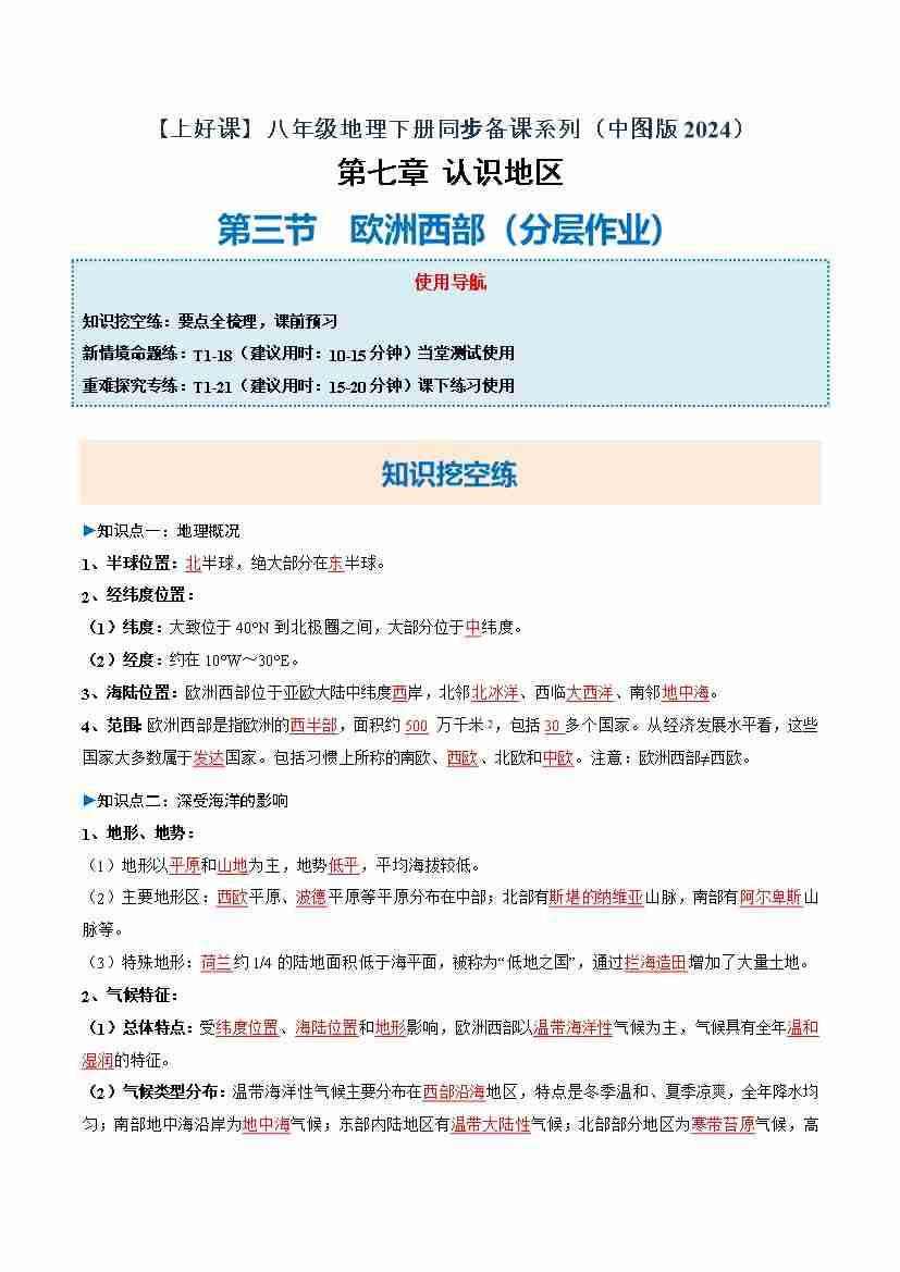 7.3 欧洲西部(分层作业)(解析版)