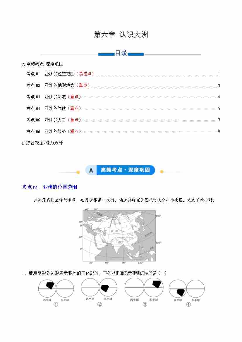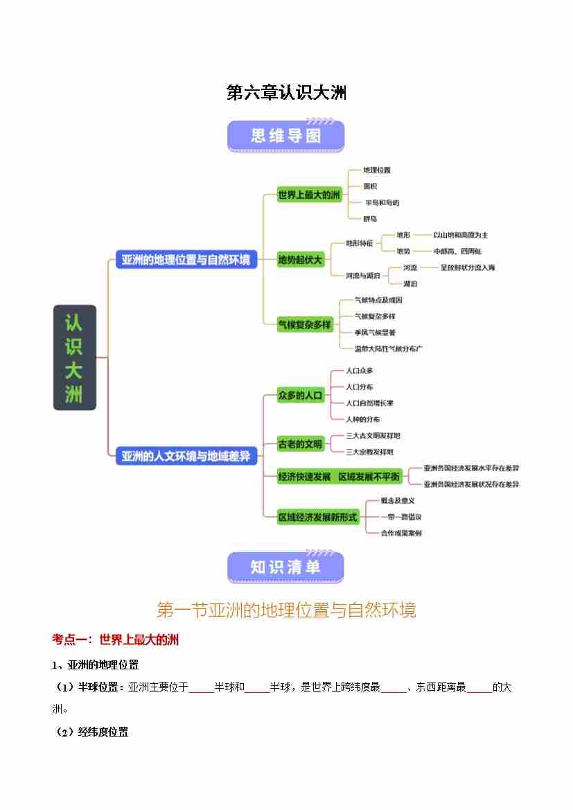 第六章 认识大洲(知识清单)(原卷版)