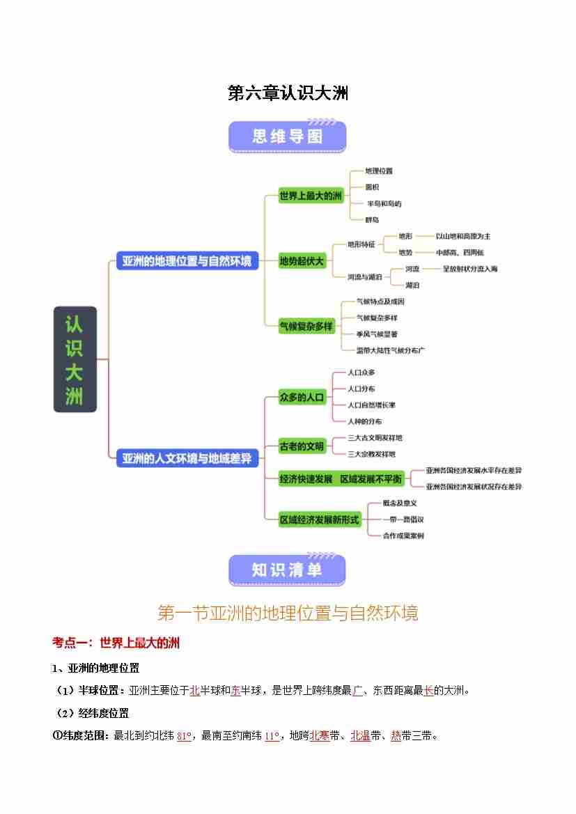 第六章 认识大洲(知识清单)(答案版)