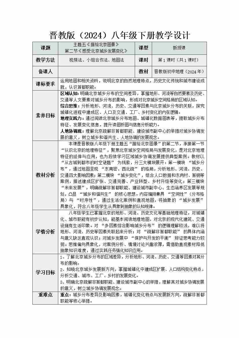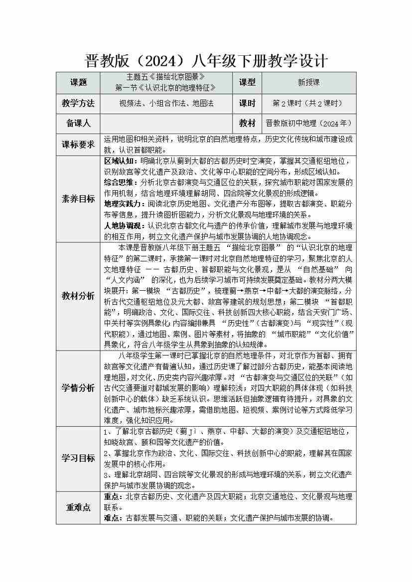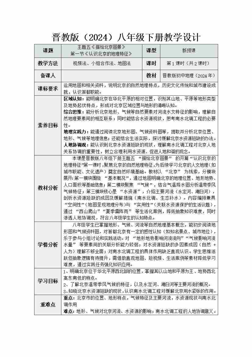 5.1 认识北京的地理特征 第2课时(教学设计)