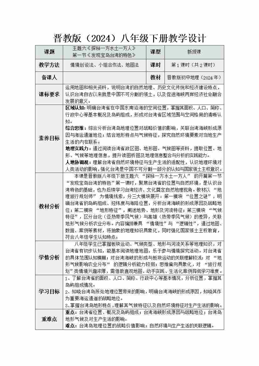 6.1 发现宝岛台湾的特色 第1课时(教学设计)