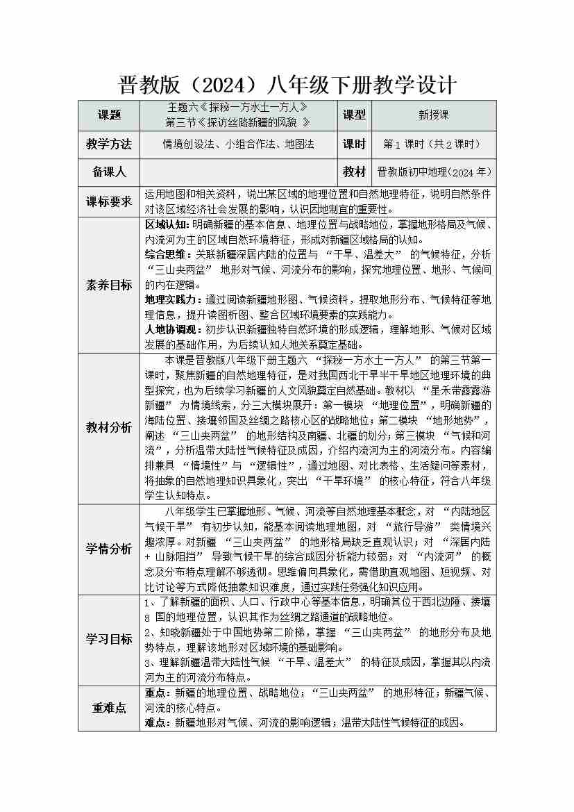 6.3 探访丝路新疆的风貌 第1课时(教学设计)