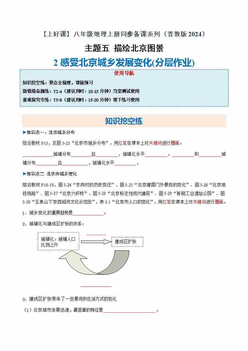 5.2 感受北京城乡发展变化(分层作业)(原卷版)