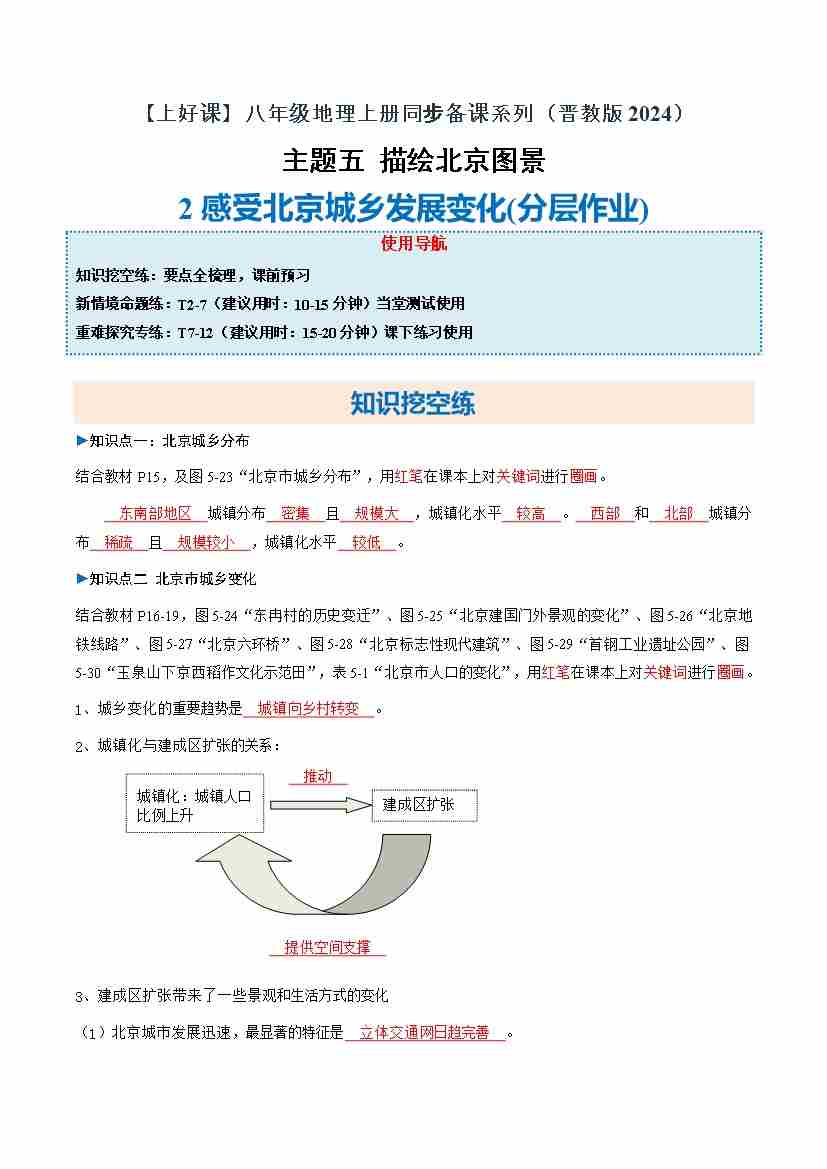 5.2 感受北京城乡发展变化(分层作业)(解析版)