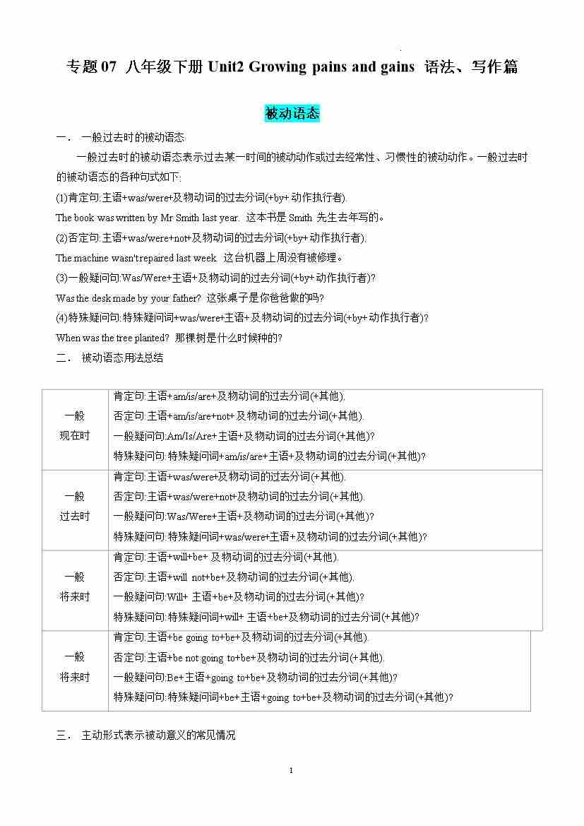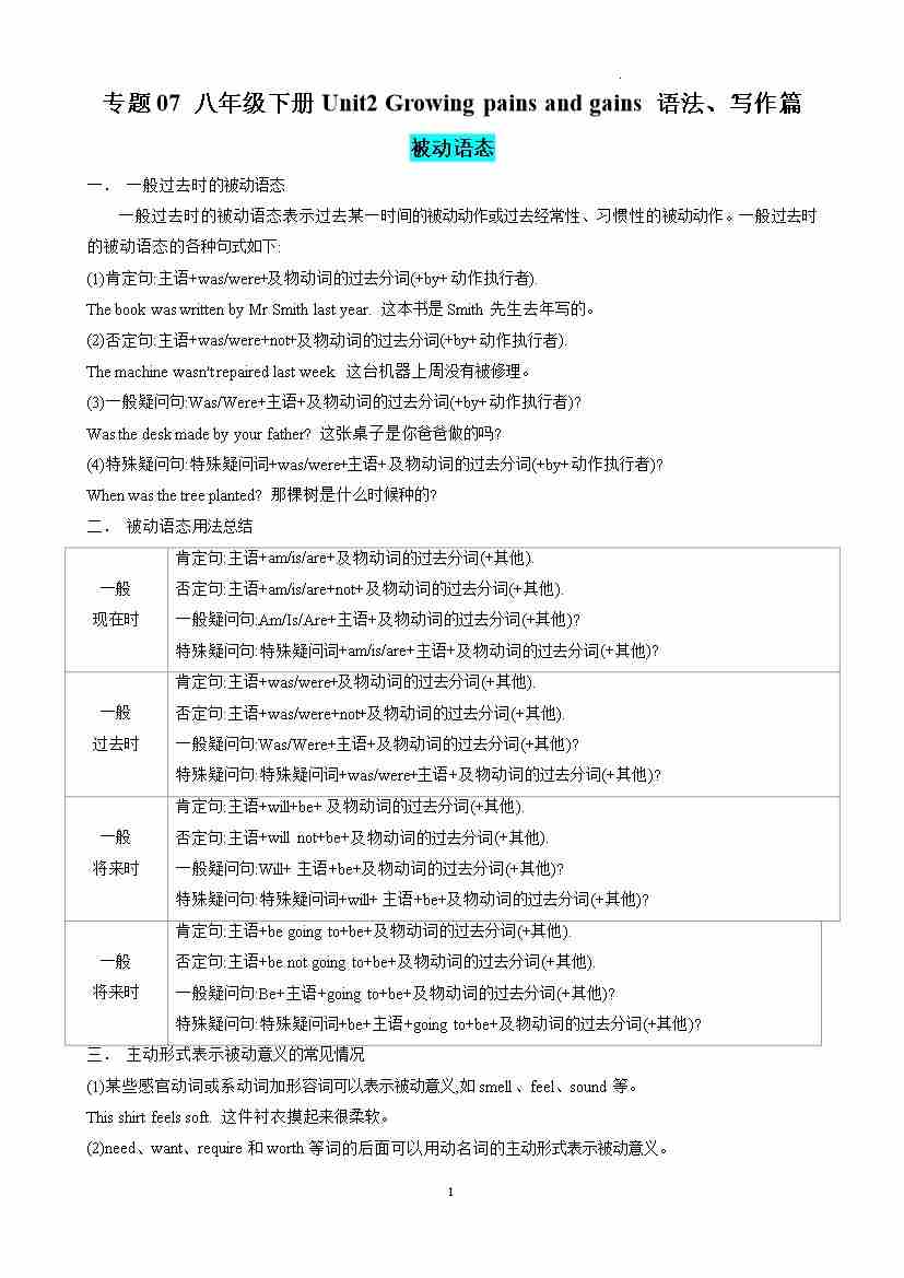 专题07 八年级下册Unit2 Growing pains and gains 语法、写作篇 (原卷版)