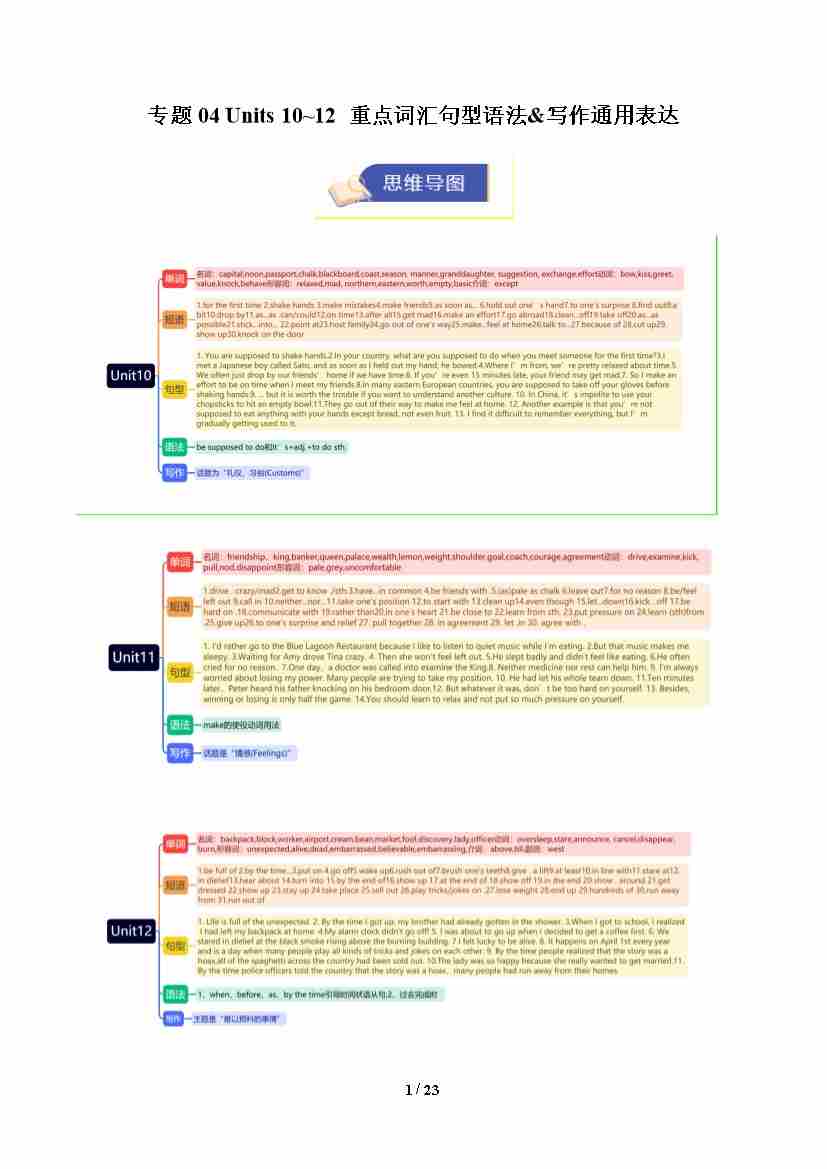专题04 Units10~12 重点词汇句型语法&写作通用表达(期末复习知识清单)(默写版)