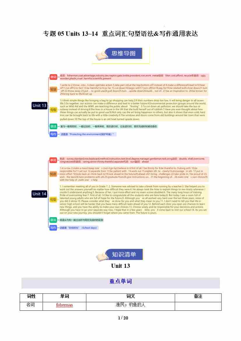 专题05 Units13~14 重点词汇句型语法&写作通用表达(期末复习知识清单)(默写版)