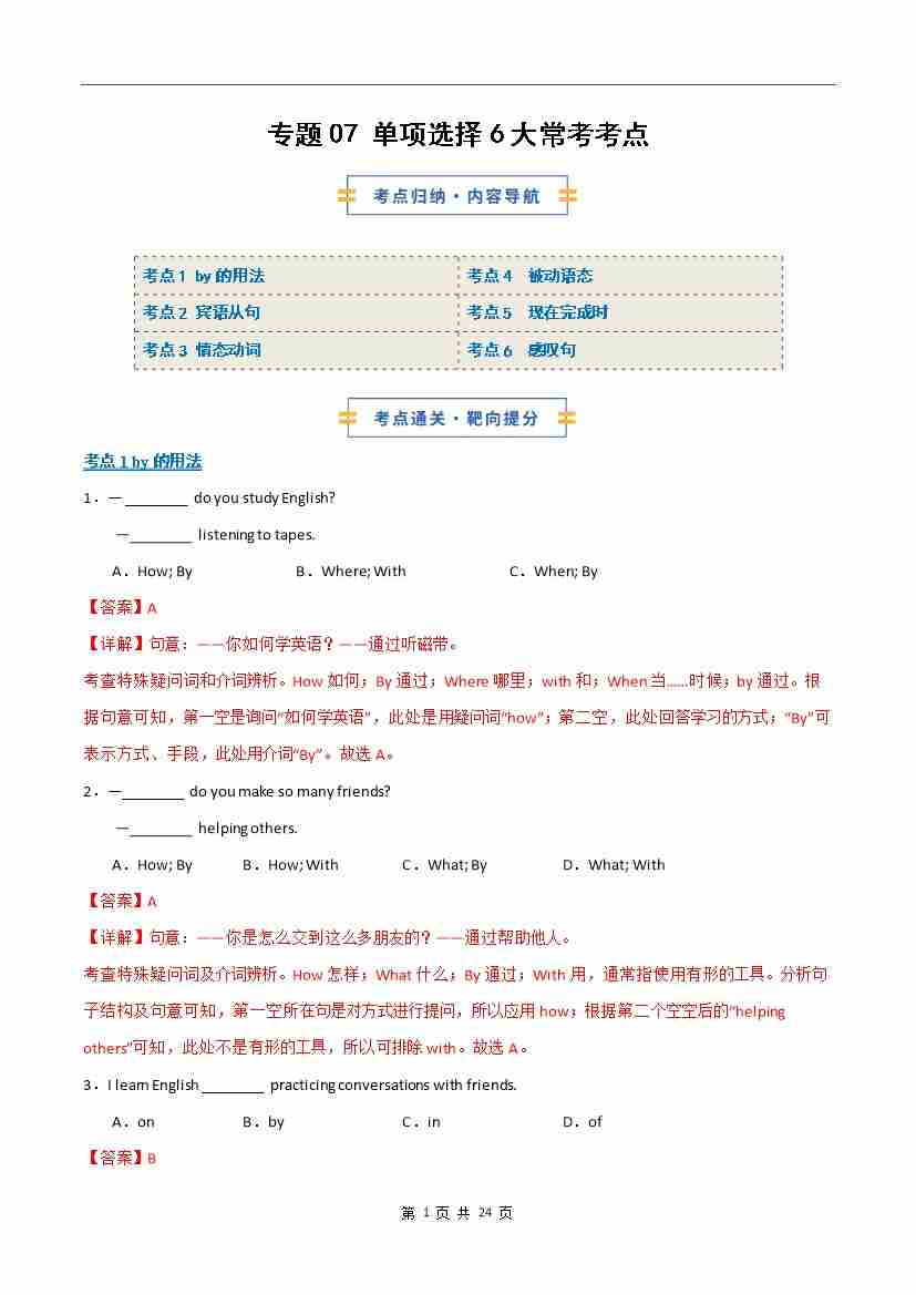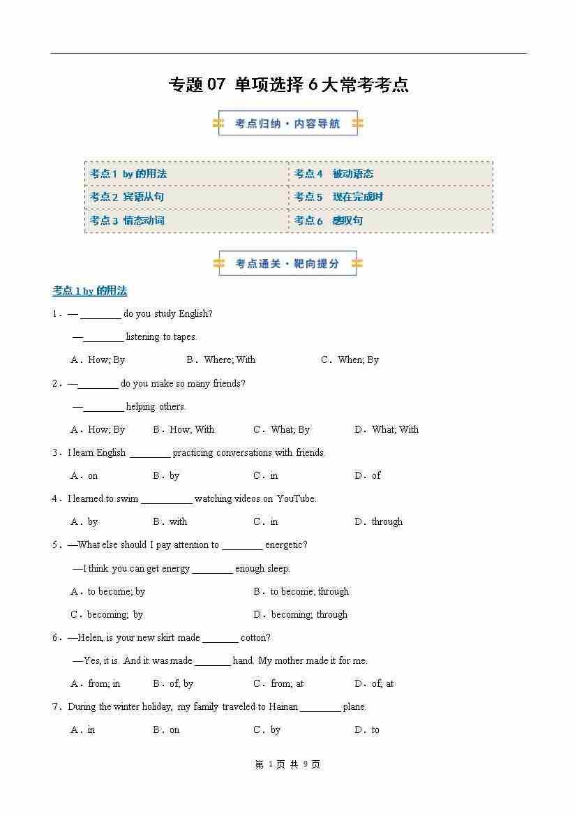 考前押题07 单项选择6大常考考点(期末复习专项训练)(解析版)