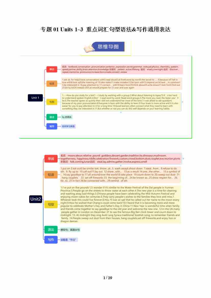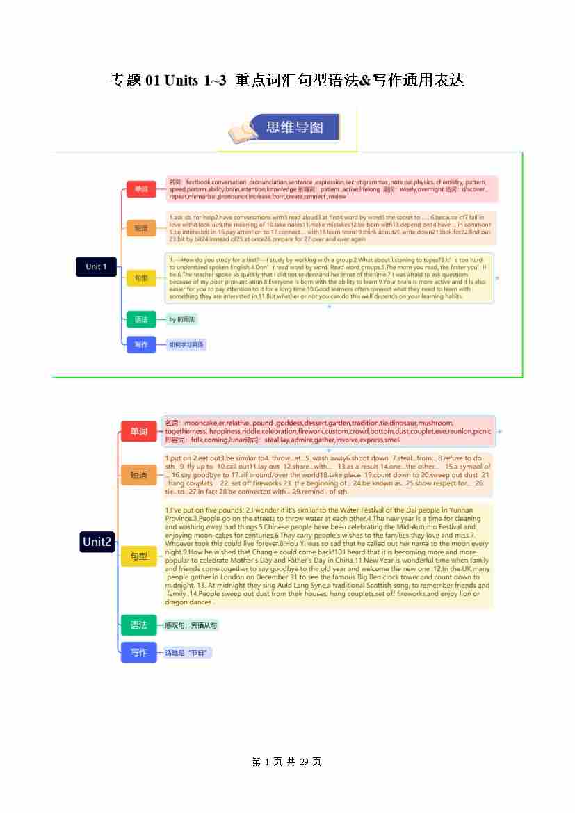 专题01 Units 1~3 重点词汇句型语法&写作通用表达(期末复习知识清单)(背诵版)