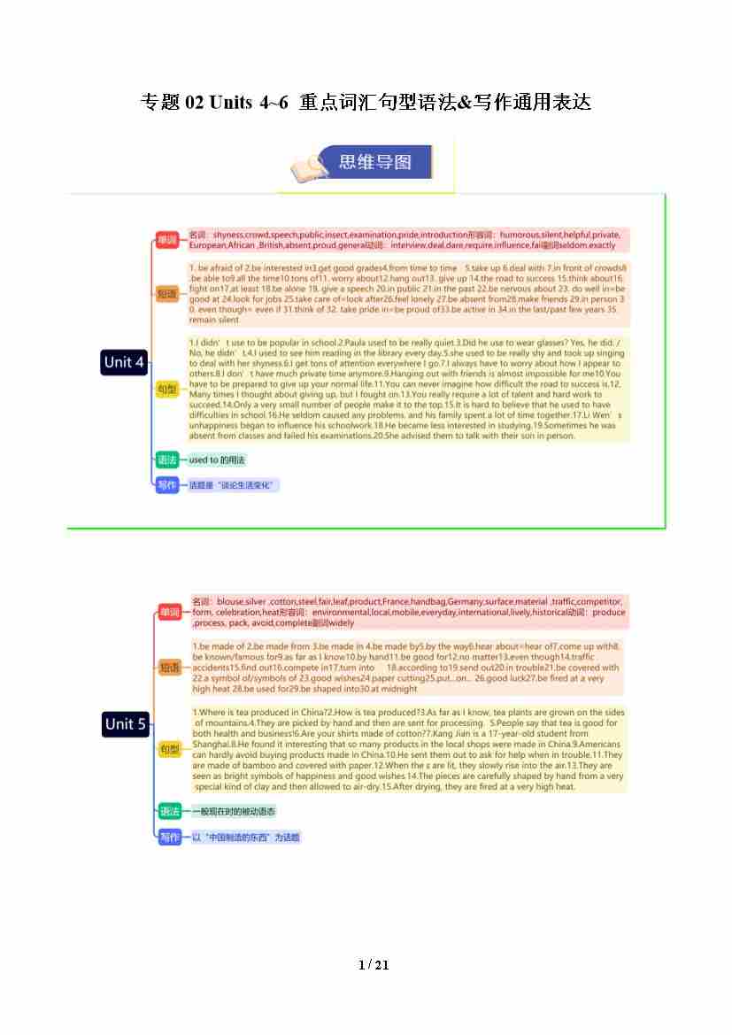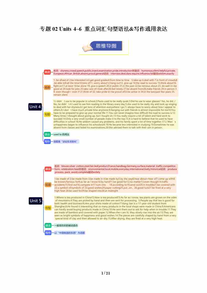 专题02 Units 4~6 重点词汇句型语法&写作通用表达(期末复习知识清单)(默写版)