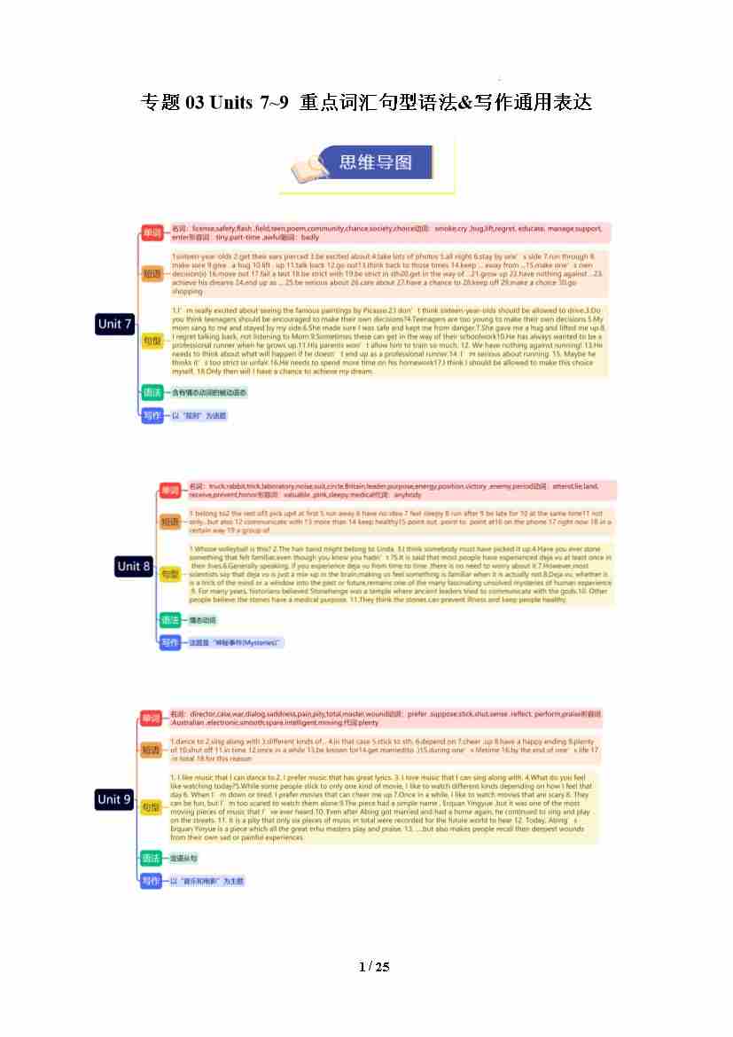 专题03 Units 7~9 重点词汇句型语法&写作通用表达(期末复习知识清单)(背诵版)