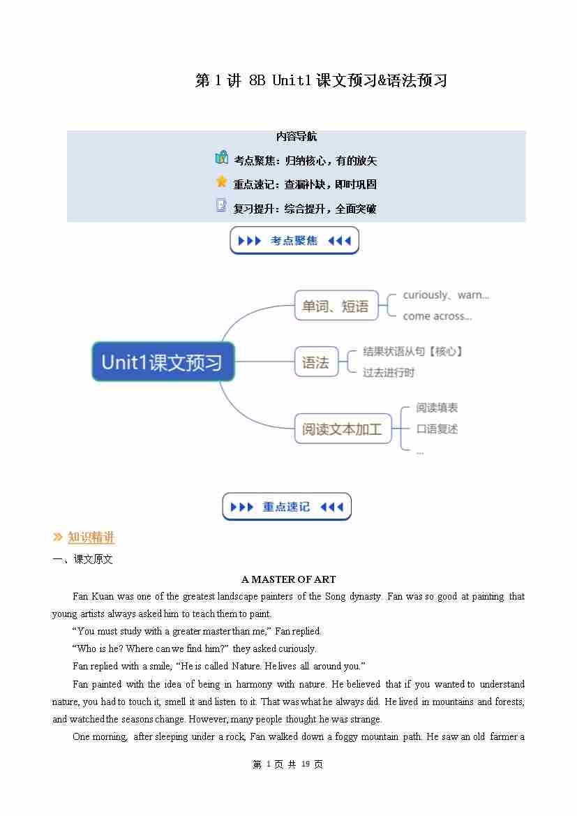 第1讲 八下Unit 1 课文预习&语法预习(寒假预习讲义)(解析版)