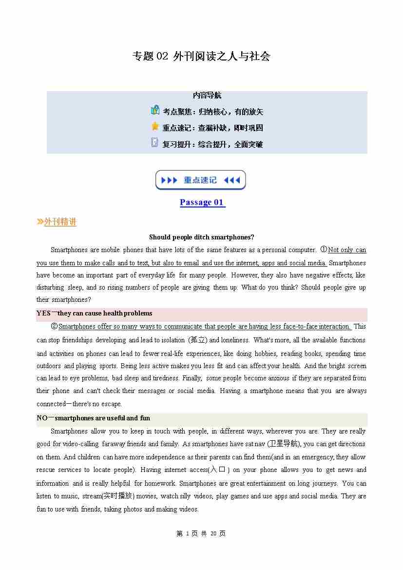 第2讲 外刊阅读之人与社会(寒假预习讲义)(解析版)