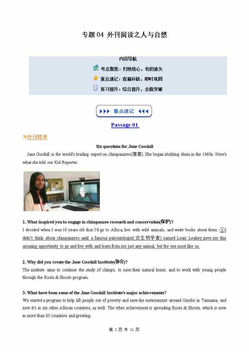 第4讲 外刊阅读之人与自然(寒假预习讲义)(解析版)