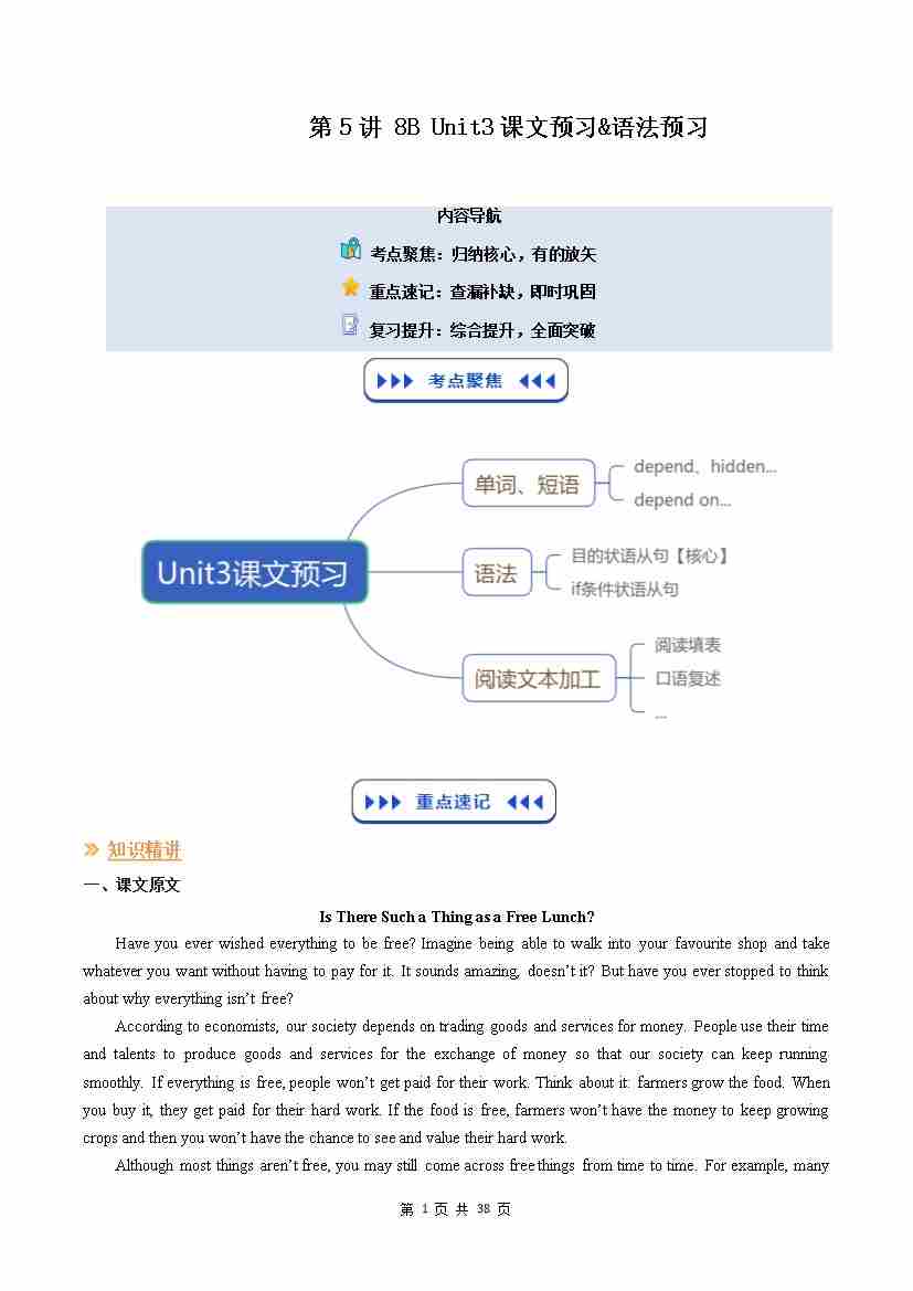 第5讲 八下Unit 3 课文预习&语法预习(寒假预习讲义)(原卷版)