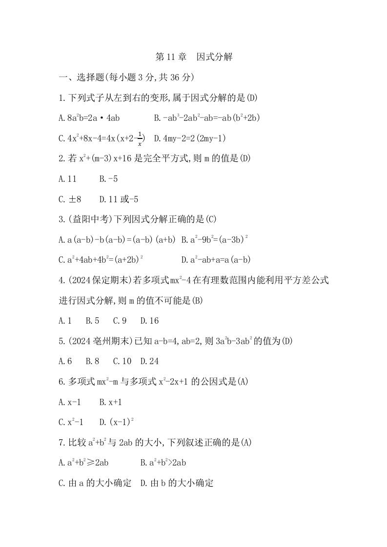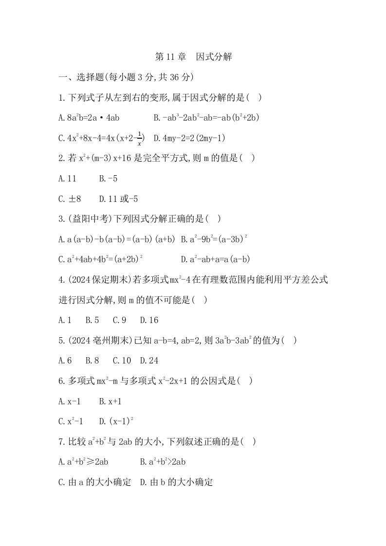 第11章 因式分解 - 学生版