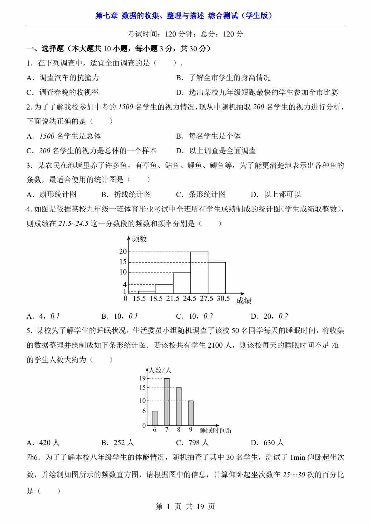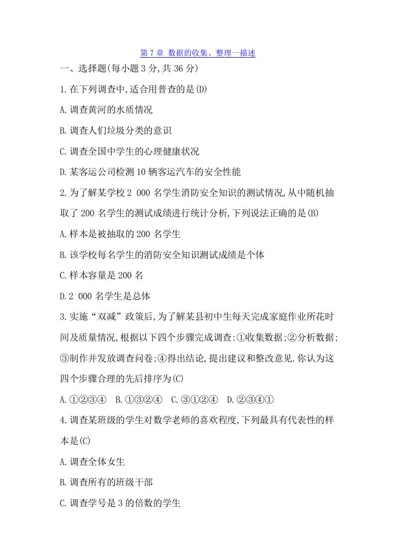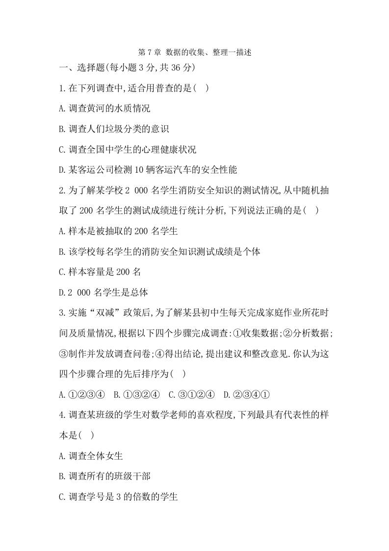 第7章 数据的收集、整理与描述(综合测试)