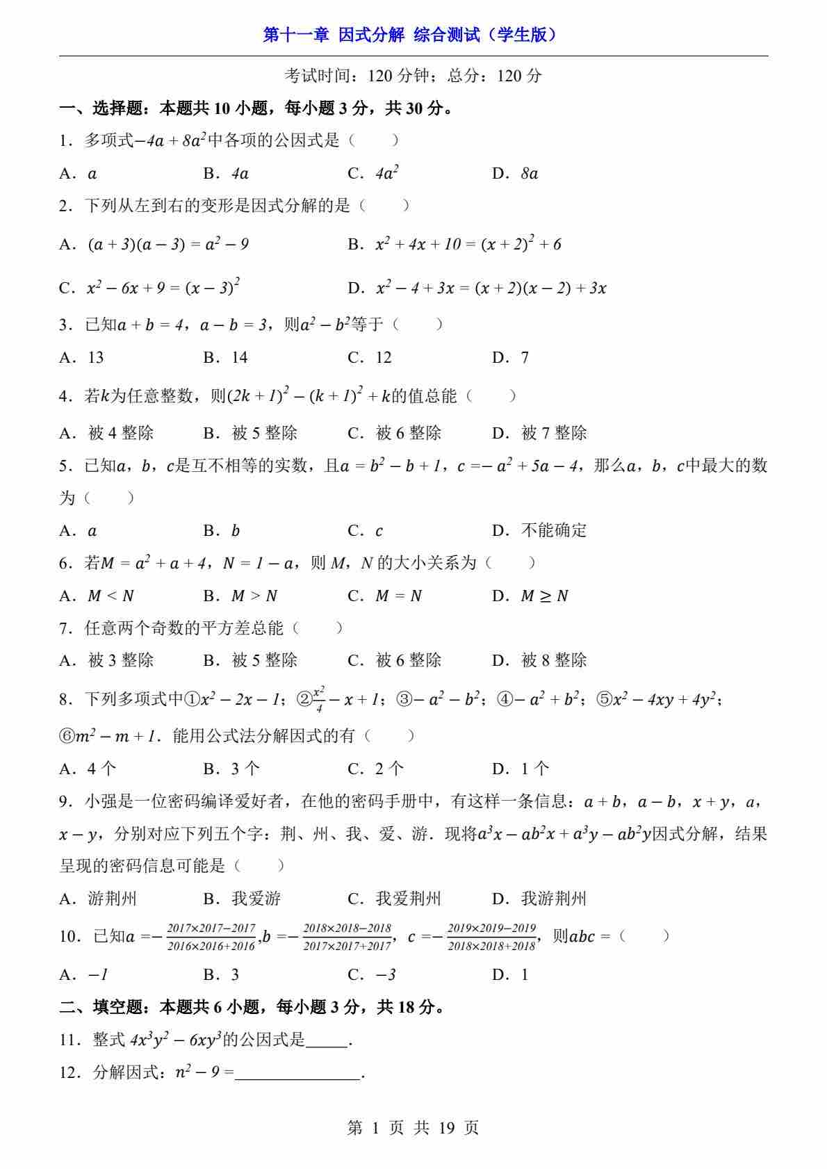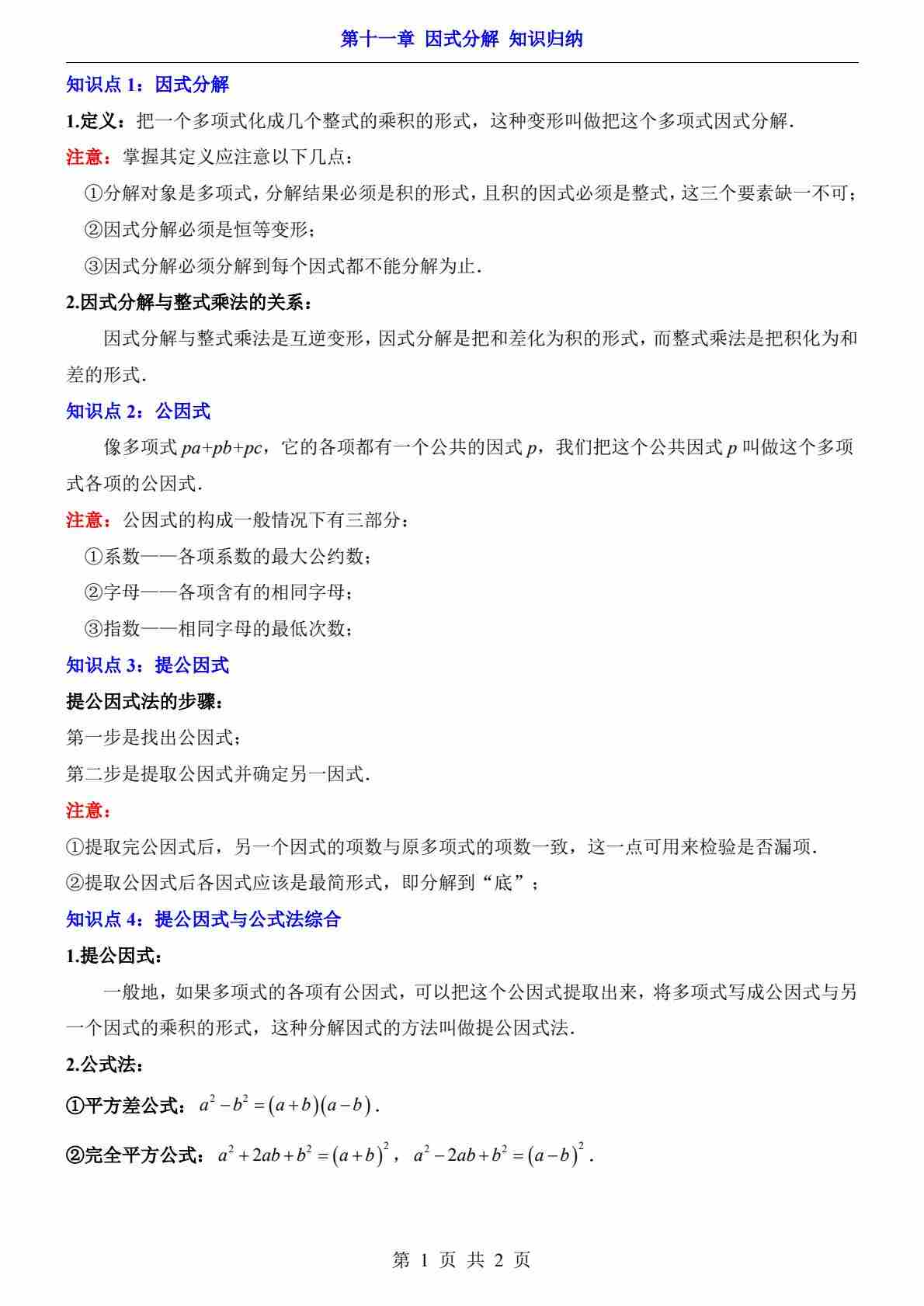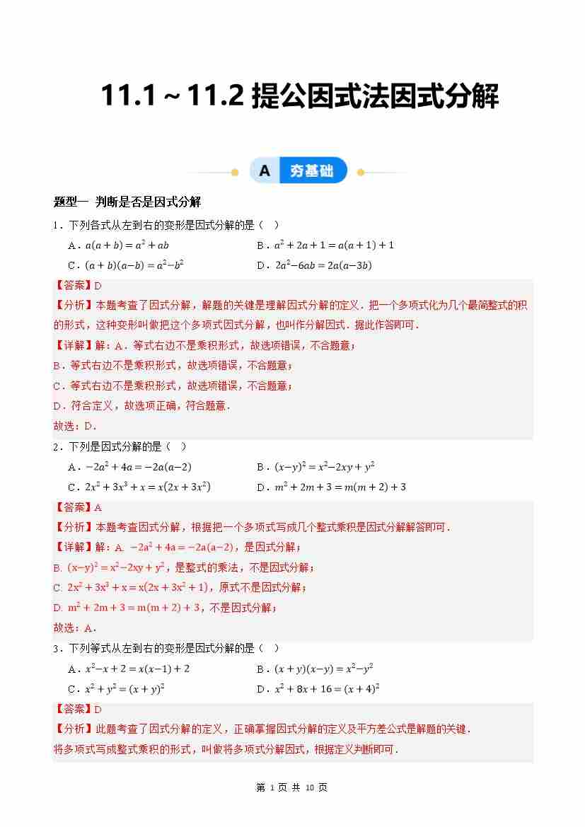 11.1~11.2提公因式法因式分解(4大题型提分练)解析版
