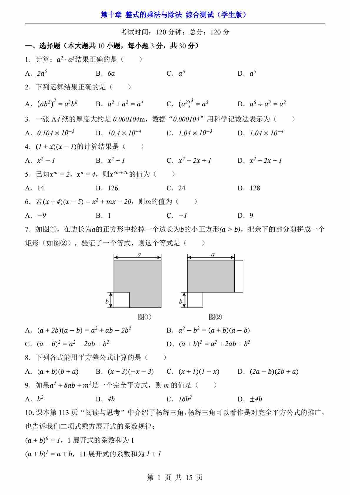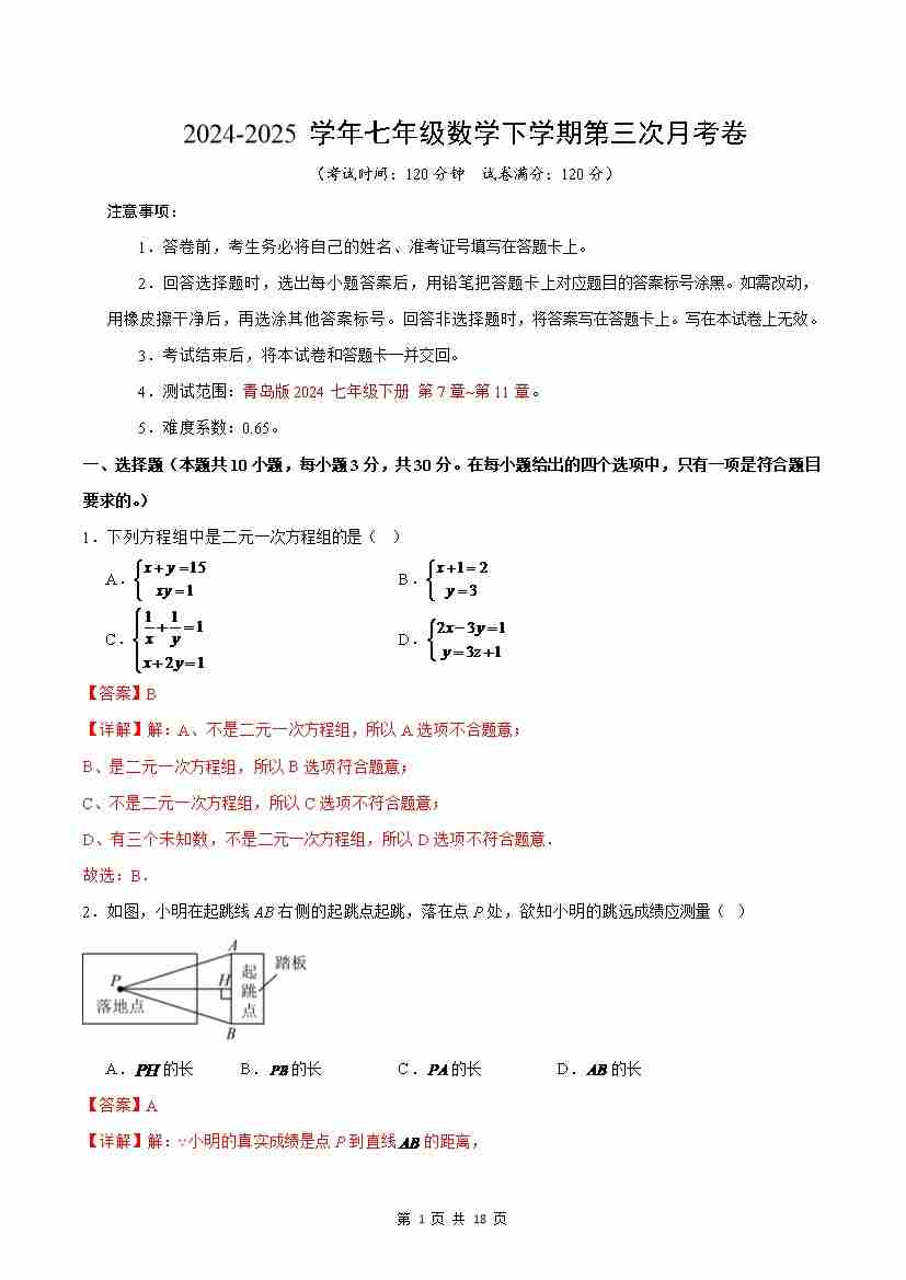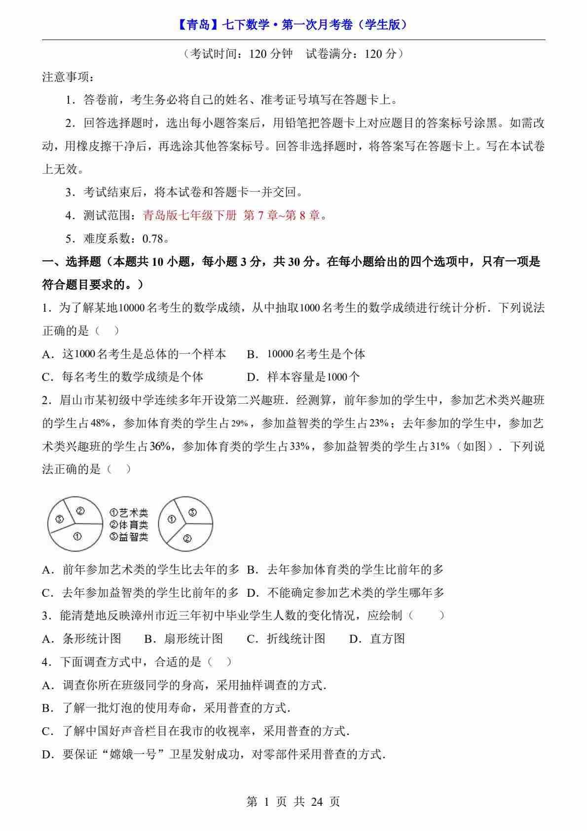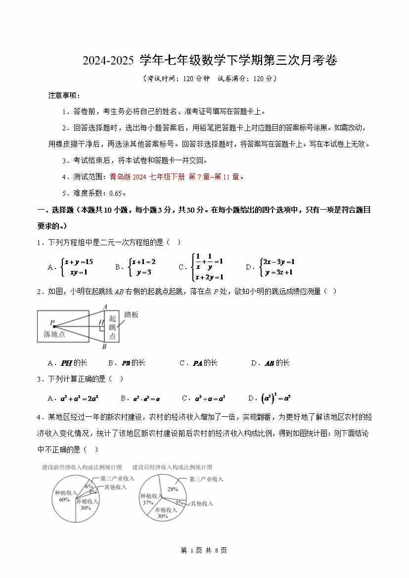 七年级数学月考卷【测试范围:七下第7~11章】(考试版)(青岛版2024)