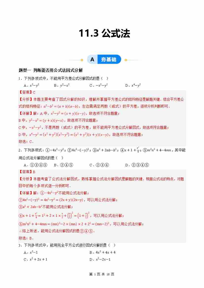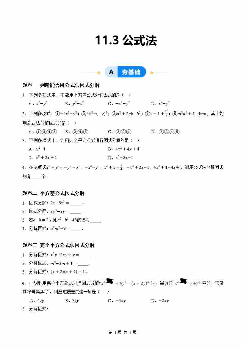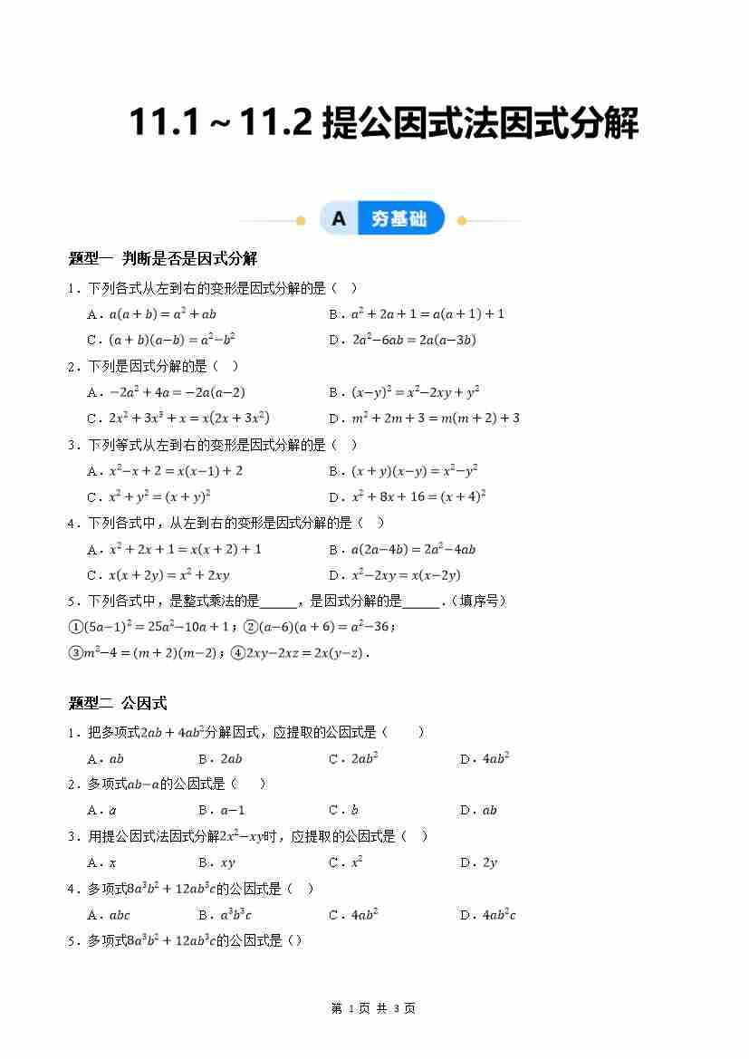 11.1~11.2提公因式法因式分解(4大题型提分练)原题版