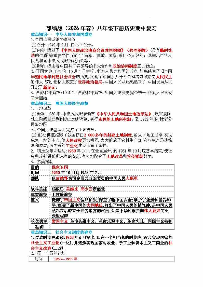 期中复习提纲-2025-2026学年统编版历史八年级下册