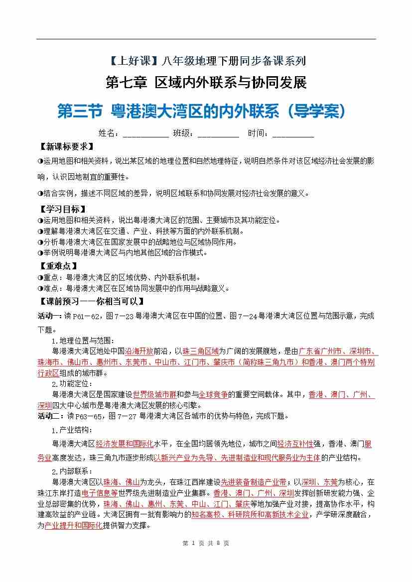 7.3 粤港澳大湾区的内外联系(导学案)(解析版)