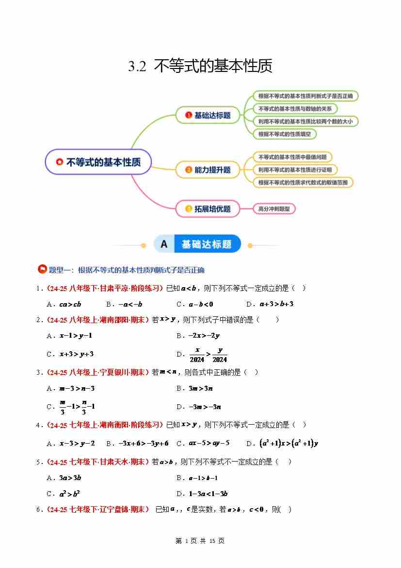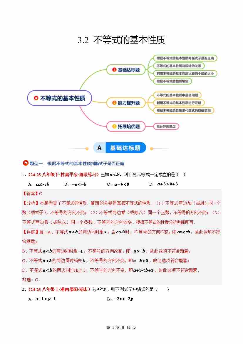 3.2 不等式的基本性质(4大基础题型3大巩固提升)(题型专练)(原卷版)