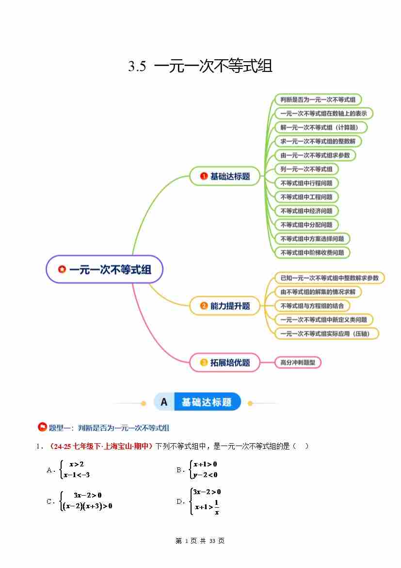3.5 一元一次不等式组(12大基础题型5大巩固提升)(题型专练)(解析版)