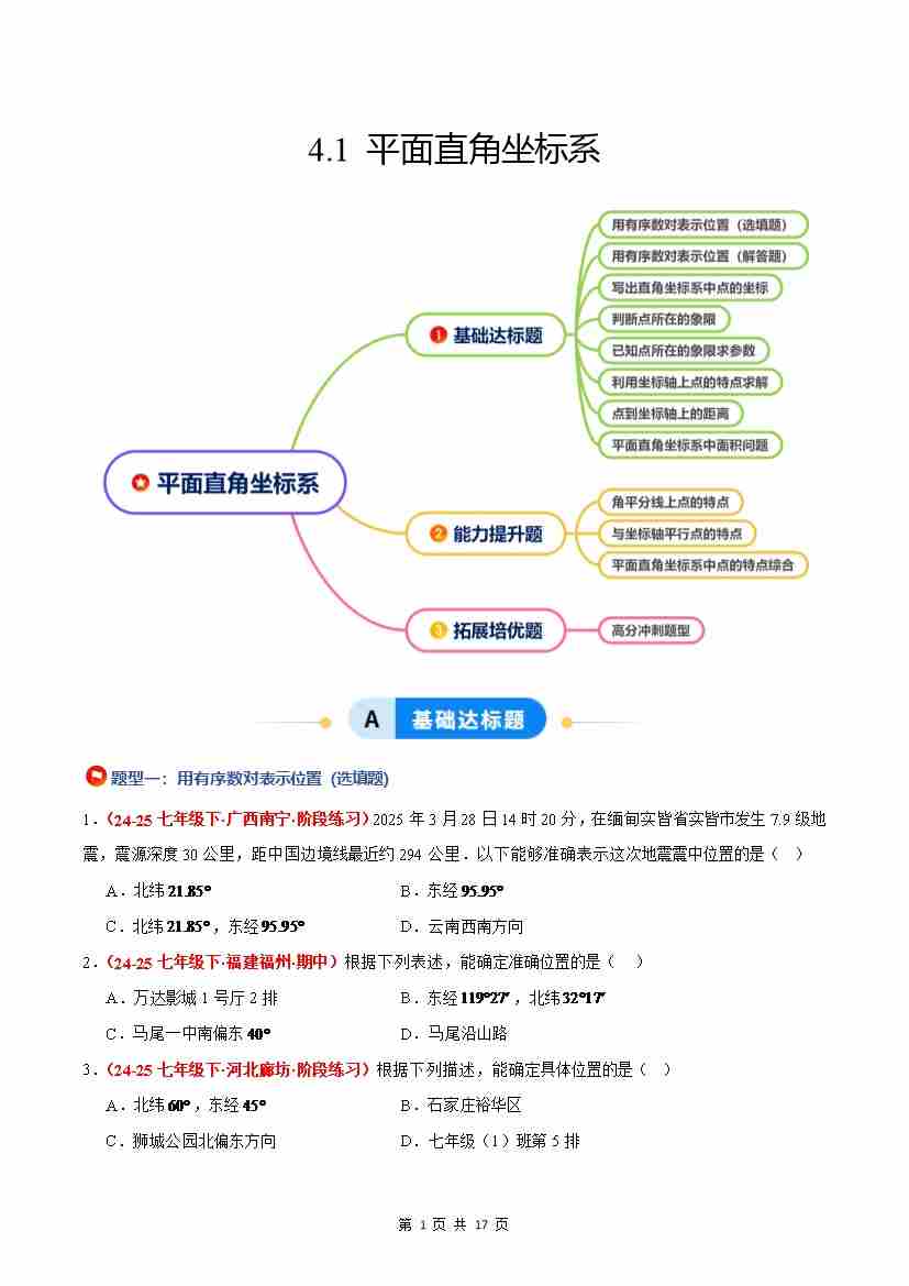 4.1 平面直角坐标系(8大基础题型3大巩固提升)(题型专练)(解析版)
